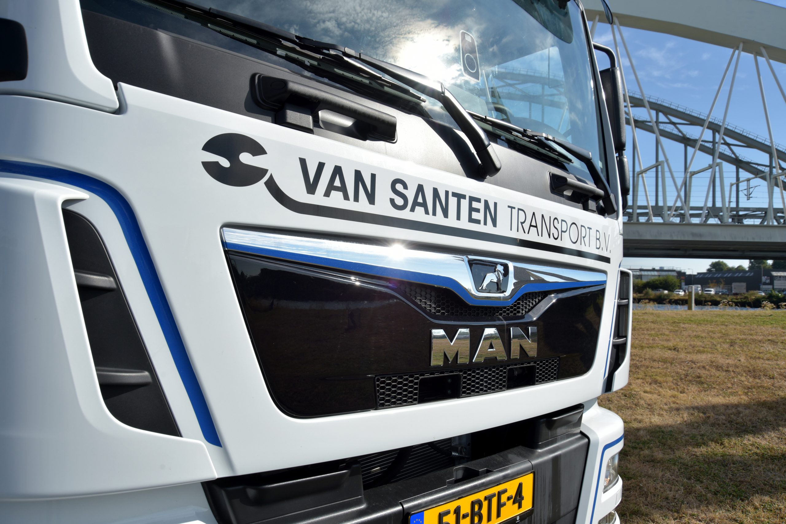Van Santen Transport uit Haarlem is een veelzijdig transportbedrijf. Naast internationaal- en zwaar transport, kraanverhuur en intern transport verzorgt Van Santen ook de distributie van bouwmaterialen voor Stiho en Baars & Bloemhoff.