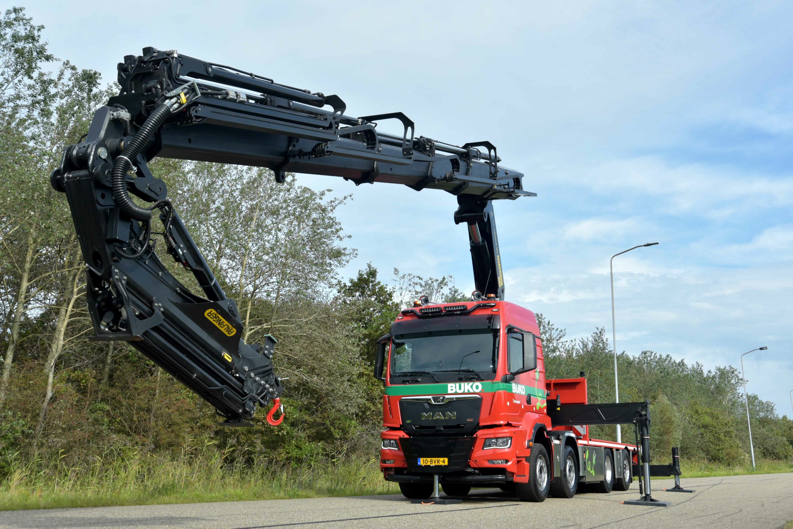 MAN Truck & Bus heeft in samenwerking met MAN-dealer BTS aan Buko Transport in Beverwijk een zeer speciale nieuwe MAN TGS 40.470 afgeleverd. Deze MAN is uitgevoerd met een 470 pk Euro 6E motor goedgekeurd voor 100% HVO, een volledig elektrisch werkende 92 tonmeter Palfinger autolaadkraan en een gewicht onder de 30 ton.