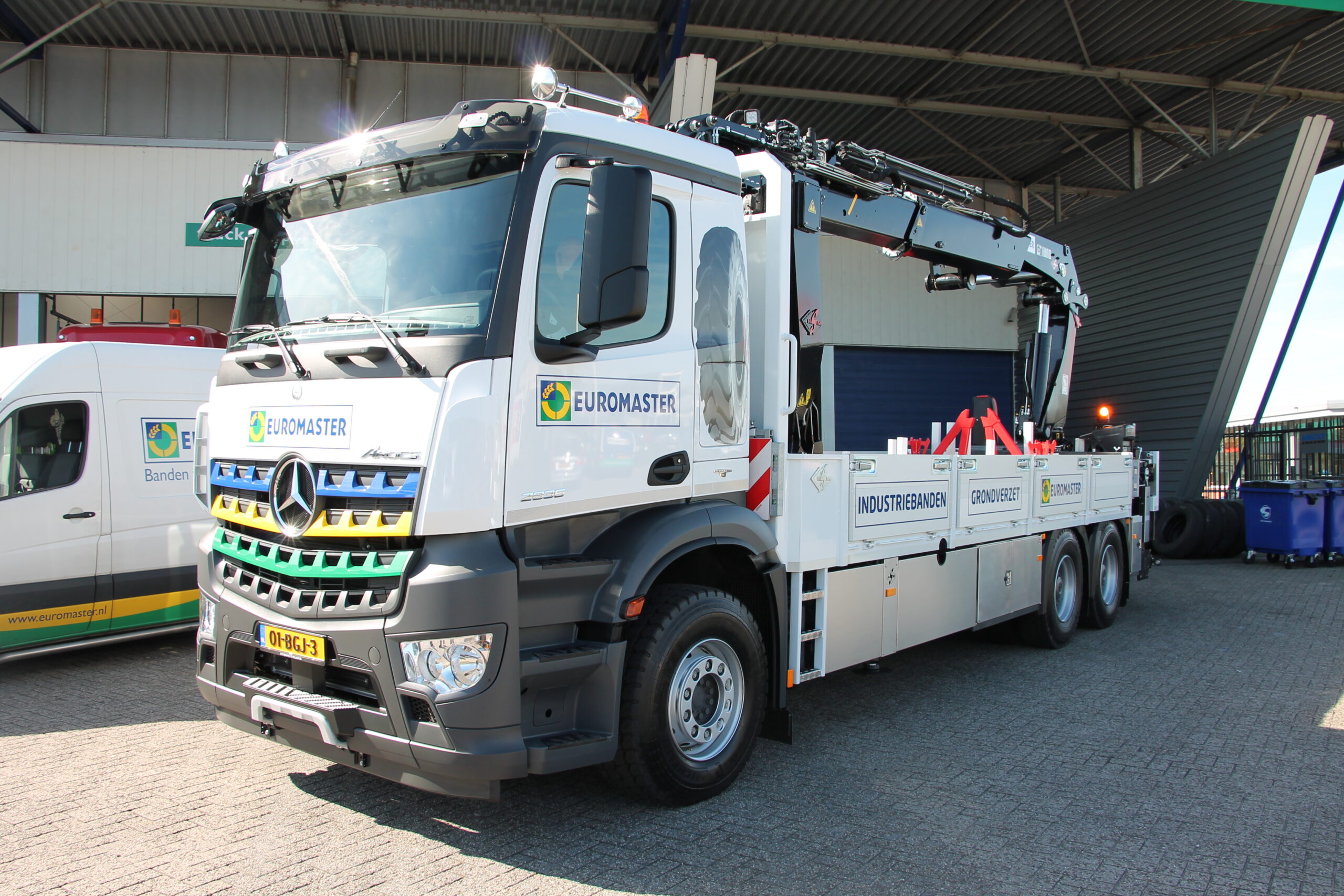 Euromaster heeft in Rotterdam een unieke bandenservice truck in gebruik genomen: een Mercedes-Benz Antos met 3D-kraan.