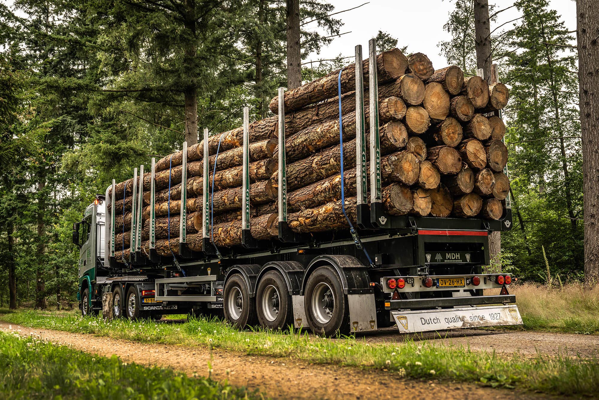 De kernactiviteit van MDH is het kappen en vervoeren van rondhout. “Daarmee bieden wij boseigenaren het onderhoud in een bos zoals bijvoorbeeld het uitdunnen zodat de overige bomen voldoende ruimte krijgen. Maar we werken ook in de omvorming waarbij er complete percelen bestaand bos worden gekapt en opnieuw worden ingepland. Dat is ter bevordering van de biodiversiteit en daarmee de vitaliteit van een bos. Op die manier verwerken wij zo’n 200.000 kubieke meter rondhout per jaar. Dat gaat naar afnemers in de houtverwerkende industrie; van zagerijen, meubel- en timmerfabrieken tot de procenten van spaanplaat, pallets en biomassa.”