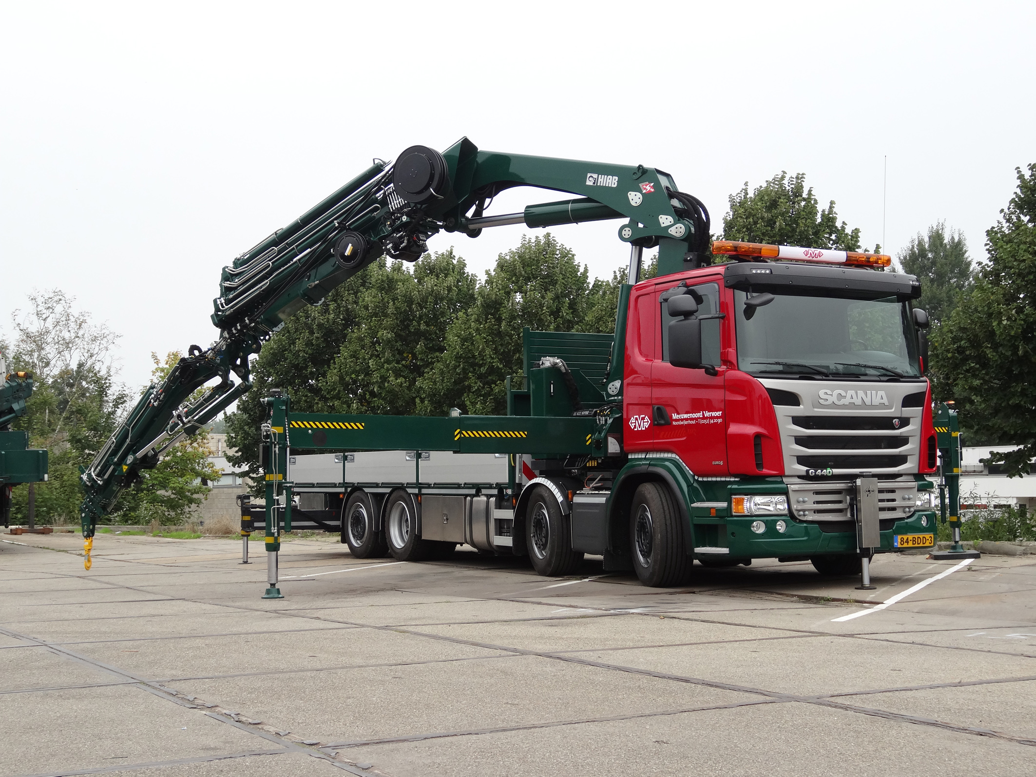 Meeuwenoord Groep, met het hoofdkantoor in Noordwijkerhout, heeft onlangs een nieuwe Scania met een Hiab 70 ton/meter kraan in gebruik genomen. De vierassige bakwagen is multi-inzetbaar. De truck heeft een laadhoogte van slechts 100 cm, waardoor ook hogere objecten meegenomen kunnen worden. Het naloopaschassis zorgt ervoor dat men ook op kleinere terreinen en woonerven moeiteloos kan manoeuvreren. De zuinige 450 pk Euro 6 motor zorgt ervoor dat het voertuig in de stedelijke gebieden een lage milieu-impact heeft. Ook op deze manier draagt Meeuwenoord bij aan een duurzame leefomgeving. De truck is afgeleverd door de vestiging Scania Rijnsburg.