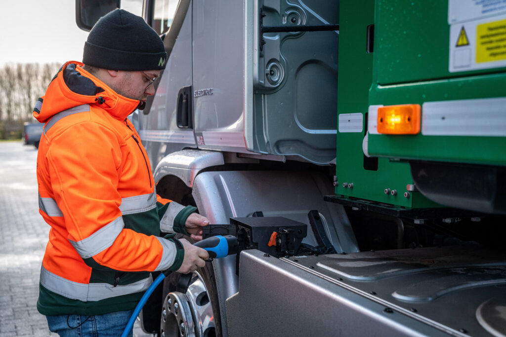 Opladen doet M&M Containerservice op eigen terrein. “Aan het eind van de werkdag gaat de truck aan de oplader die Volvo Trucks heeft meegeleverd. In de komende jaren willen we verder opschalen om onze ambities waar te maken. We hebben nu 21 trucks in het wagenpark, waarvan één elektrische. Wij hebben drie divisies: naast kraakperswagens hebben we ook portaalwagens en containerauto’s. In elke divisie willen we de komende jaren elektrische trucks gaan inzetten om ons voor te bereiden op de toekomst. We krijgen vanaf 2025 ook te maken met zero-emissie zones in binnensteden. Nijmegen is een van de steden in ons werkgebied die zo’n zone invoert. Om onze klanten in binnensteden ook in de toekomst goed te blijven bedienen, moeten we ervoor zorgen dat we in ons wagenpark voertuigen hebben waarmee we overal mogen komen. Dat is, naast onze eigen ambities om te verduurzamen, ook een reden om nu voor elektrisch te gaan.”