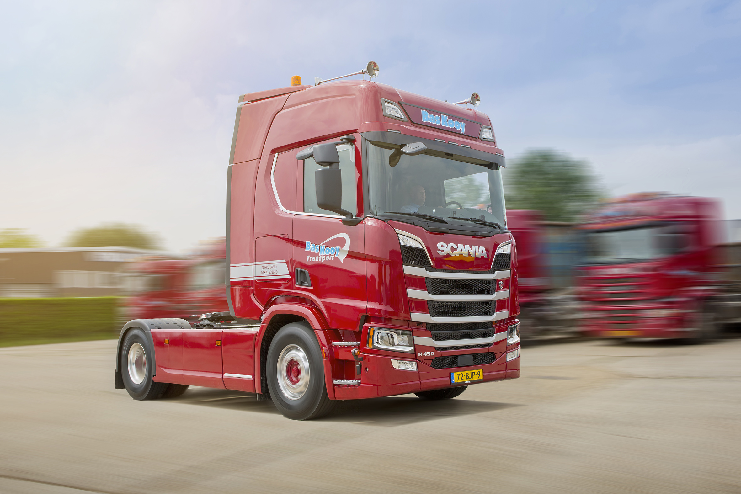 Kooij rijdt in beginsel met twee merken, er zijn ook Volvo’s in de vloot, maar kiest de laatste tijd vrijwel uitsluitend voor Scania. ,,Qua uitstraling en uitrusting hebben mijn chauffeurs met beide merken niets te klagen. Maar de Scania met de 450 SCR-only motor doet het qua brandstof- en AdBlueverbruik echt beter. Omdat brandstof en banden twee heel belangrijke speerpunten binnen onze bedrijfsvoering zijn, kies ik voor Scania”, vertelt Kooij.