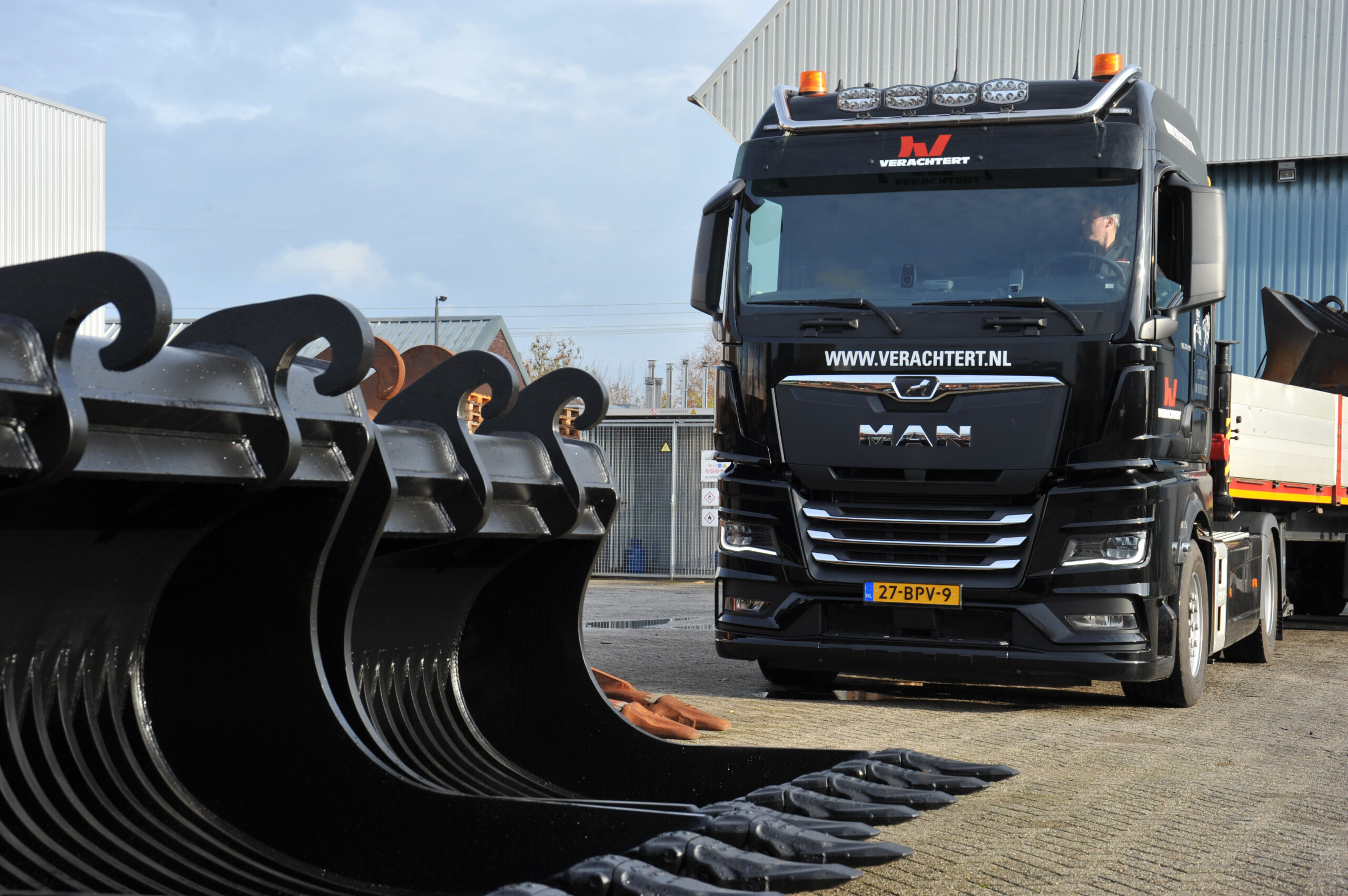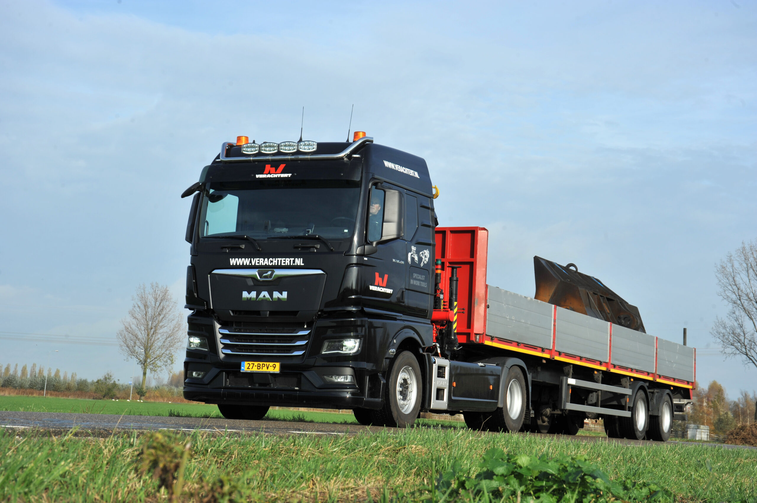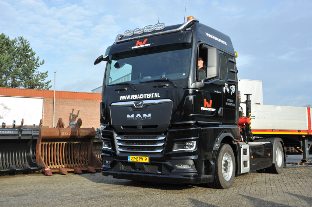 Stefan Geerts Transport uit Den Bosch rijdt sinds kort met de nieuwe generatie MAN TGX. De trekker is in de zwarte huisstijl van Verachtert.nl gespoten, aangezien de truck daar vast voor rijdt.