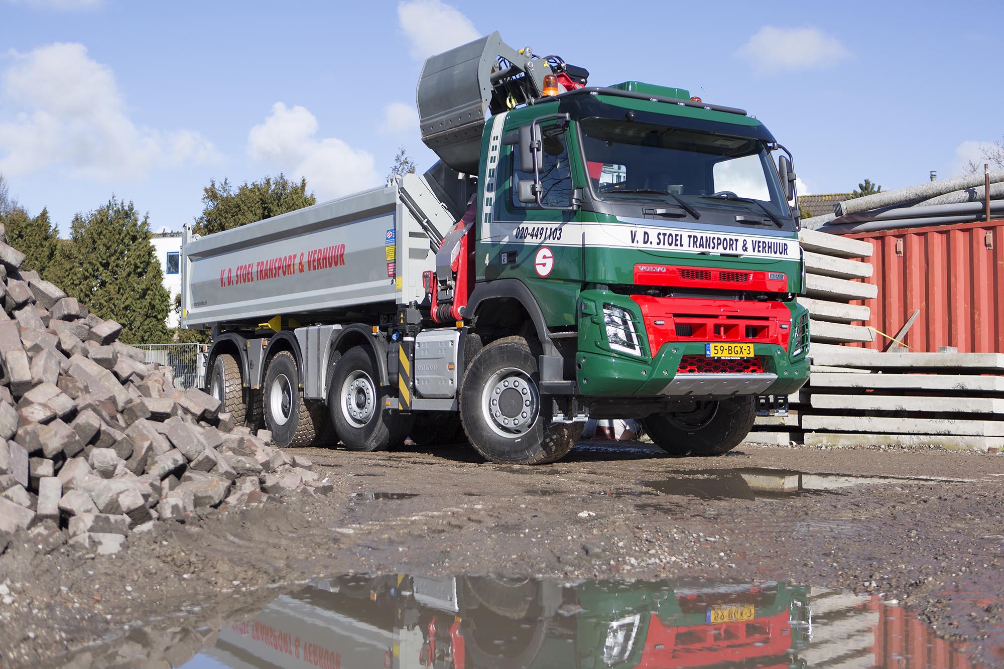 Maar de truck moest ook zwaar genoeg zijn. “In de moderne wegenbouw worden te verwerken materialen en pakketten steeds groter en zwaarder. Om ook in de toekomst onze dienstverlening te kunnen waarborgen, hebben we ingezet op een grotere truck die meer belading aankan”, legt van der Stoel uit. De nieuwe Volvo FMX zal worden ingezet bij stratenmakers- en rioleringswerkzaamheden in en rond Amsterdam.