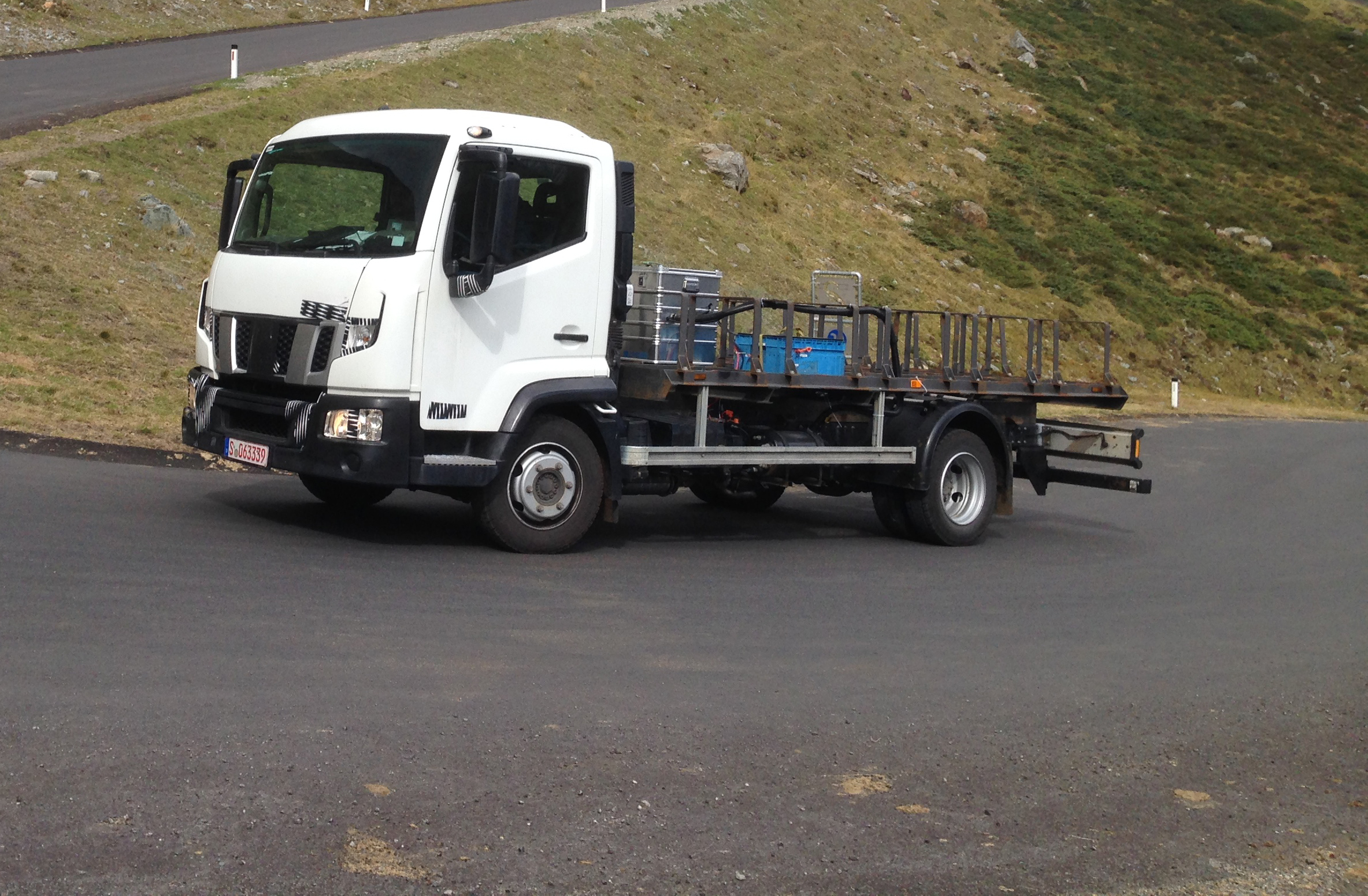 Onze collega’s van Moto73 en Motor spotten twee gecamoufleerde Nissan NV500’s in het afgelegen Kaunertal in de Oostenrijkse Alpen. De NV500 is het vervolg op de Cabstar.