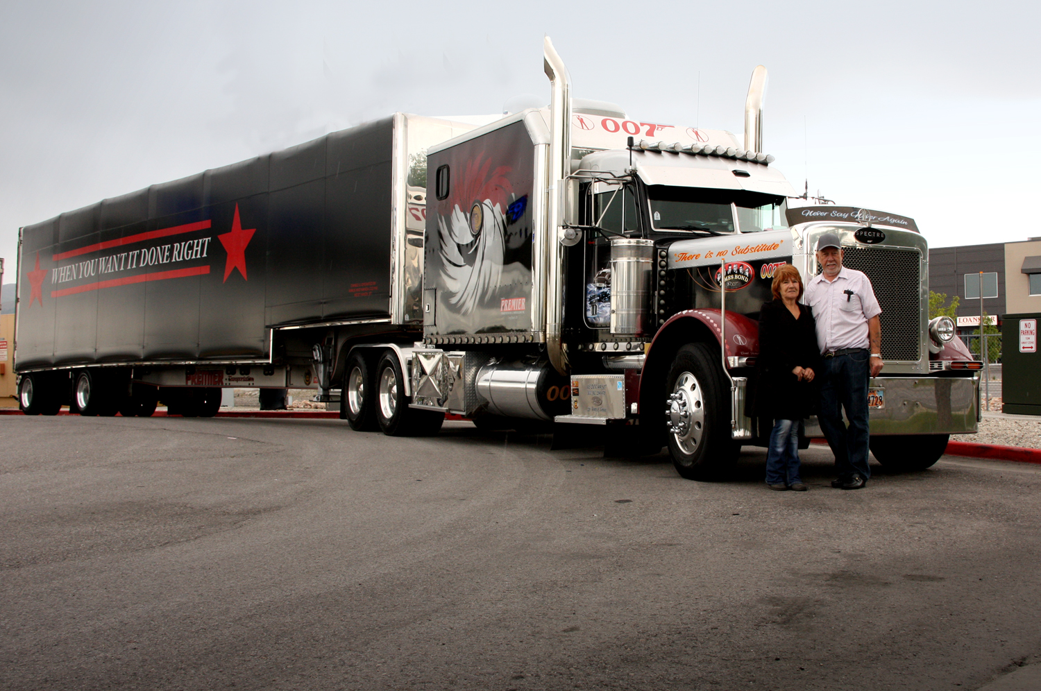Ze leerden elkaar kennen op drie huizen afstand in Nijmegen en wonen – als ze niet aan het rijden zijn – al vele jaren in West Haven, Utah. Maar in hun enorme ‘sleeper’ is het ook prima vertoeven. Alle gemakken zijn aan boord van douche tot aanrecht en satelliet tv.