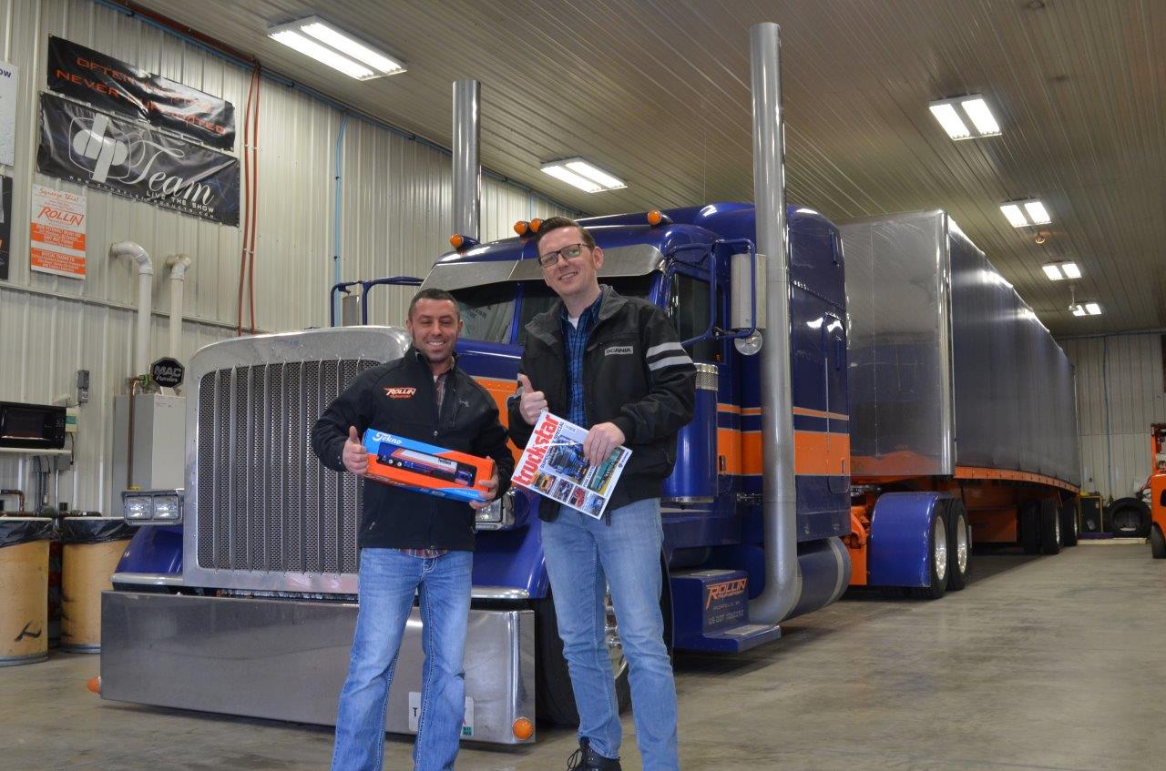 Het bezoek aan Rollin was extra leuk omdat het Truckstar Festivalmodel in 2015 gebaseerd is op een truck van Rollin, een Peterbilt. Als vertegenwoordiger van Truckstar overhandigde Jan Jaap Verweij een van deze modellen aan de chauffeur op deze Peterbilt: Kevin Pascavis, bijgenaamd Biggz. De Peterbilt heeft reeds 1,3 miljoen mijl op de klok. De trailer heeft een schuifkap die zowel naar voren als naar achteren compleet opengeschoven kan worden. Het merk van de trailer is MAC. In de Truckstar supertruckspecial van vorig jaar staat een reportage over deze prachtige truck met foto’s van Ferdy de Martin.