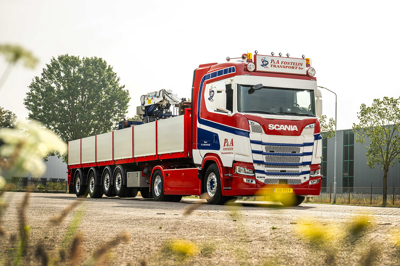De broers Patrick en André Fonteijn groeiden op tussen de trucks. In 2000 schaften ze twee Scania trucks aan en begonnen ze hun eigen transportbedrijf, dat sinds 2005 P&A Fonteijn Transport B.V. heet. Wat begon met ferrytransport groeide uit tot een samenwerking met een lokaal bedrijf in sierbestrating. Sindsdien rijden ze dagelijks met betonklinkers en bestratingsmateriaal door heel Nederland en een stukje van Duitsland en België. Het wagenpark is inmiddels uitgegroeid tot vijf trucks, allemaal met dezelfde herkenbare, verzorgde uitstraling.