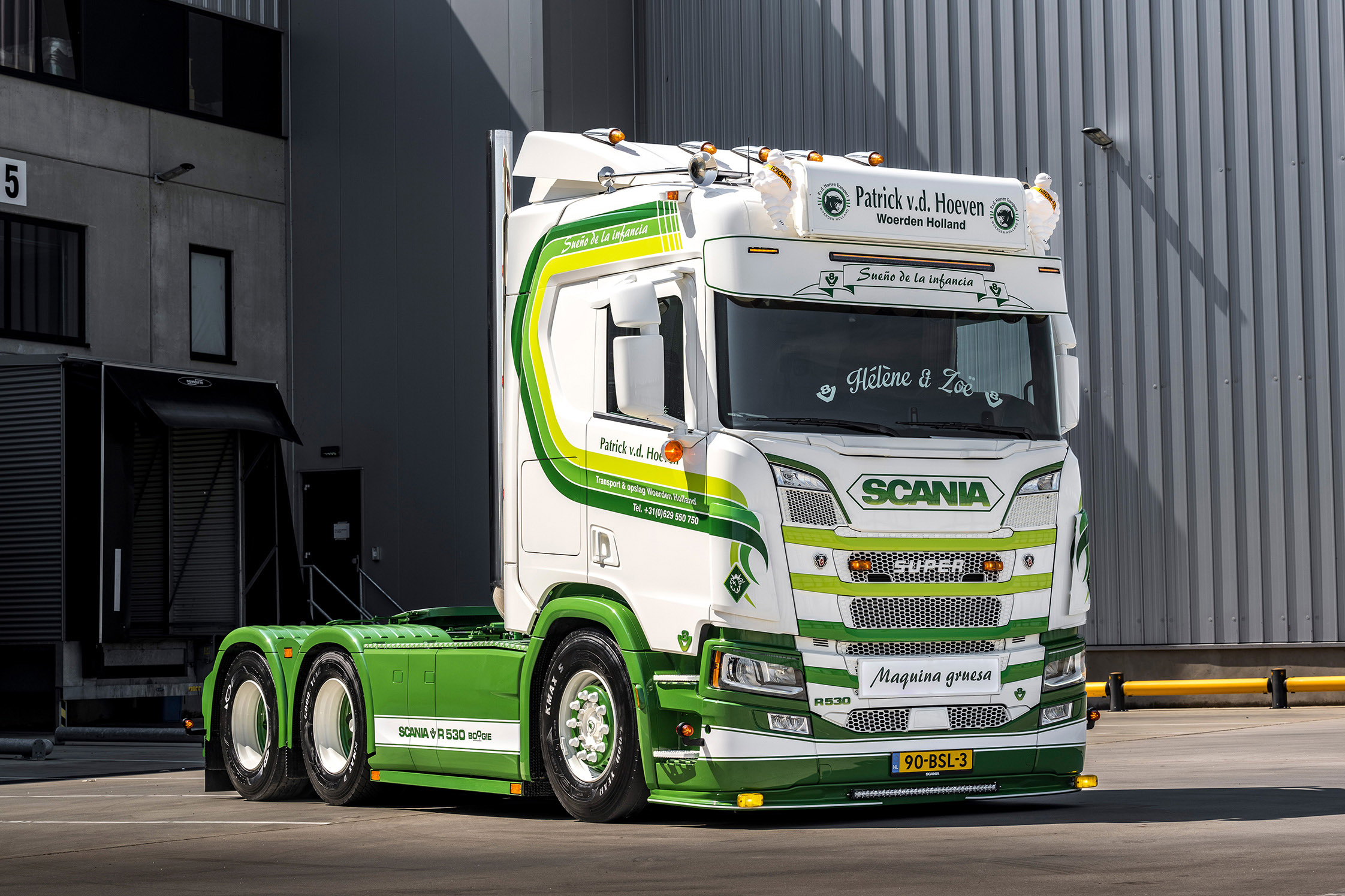 Transportbedrijf annex zand- en grindhandel Patrick van den Hoeven uit Woerden neemt vijf nieuwe Scania’s met een 530 pk sterke V8-motor in gebruik. Het bijzondere daarbij is dat zijn chauffeurs allemaal zelf een configuratie mochten kiezen. Op twee voorwaarden na: het moest passen bij het werk én geen van de vijf Scania’s mocht hetzelfde zijn.
