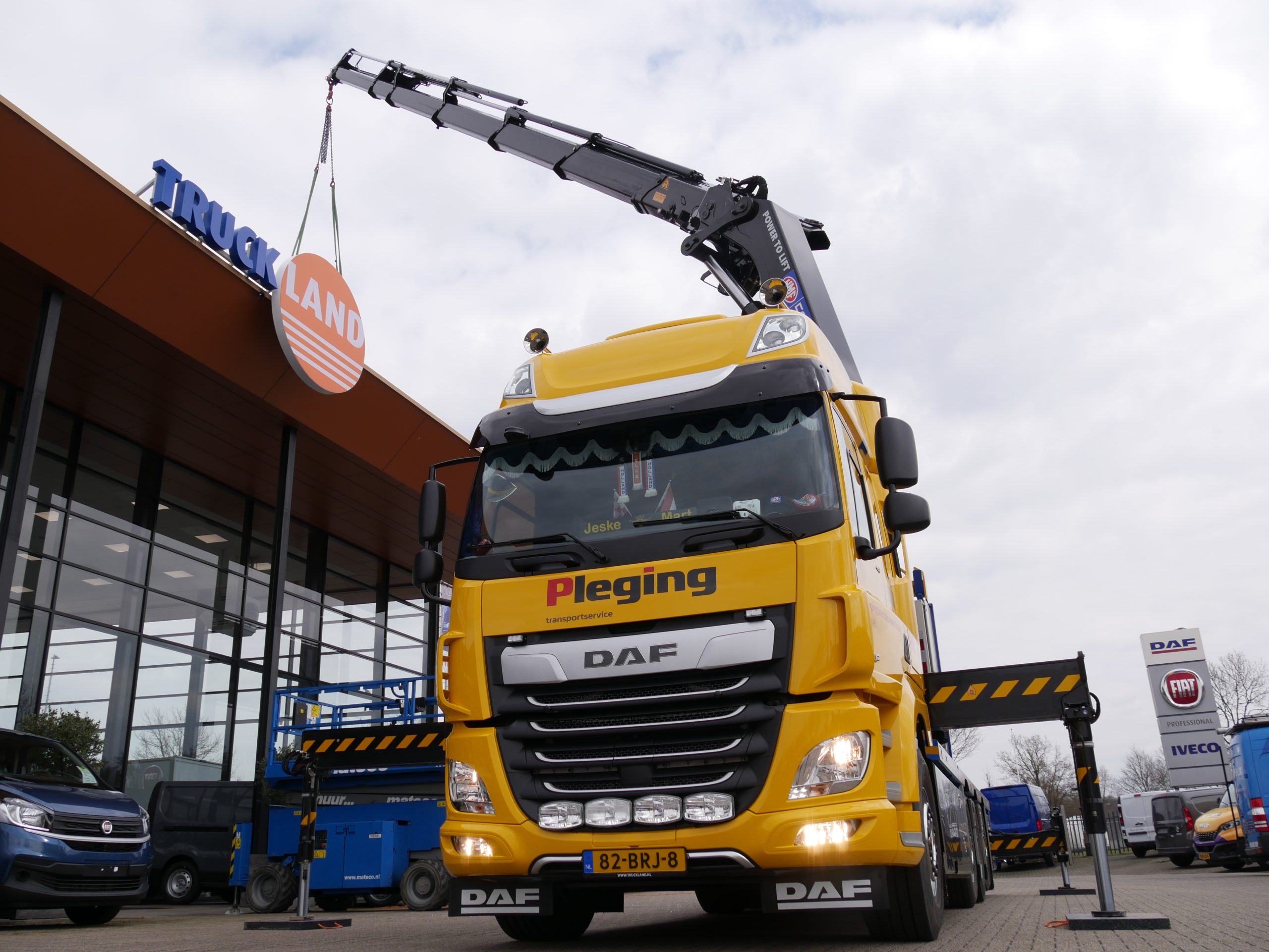In het wagenpark van Pleging Transportservice B.V. rijden 18 DAF trucks. Pleging: “De ervaringen met DAF en de ondersteuning vanuit onze dealer Truckland Eindhoven zijn uitermate positief. De opbouw en aflevering van deze nieuwe DAF CF 480 FAQ is volgens planning verlopen. Het is heel fijn voor onze bedrijfsvoering als materieel op tijd beschikbaar is. De DAF CF 480 FAQ is dan ook al vanaf dag 1 volle bak aan het rijden. De prettige samenwerking met Truckland werd recent nogmaals benadrukt: de splinternieuwe DAF CF 480 FAQ met laadkraan is namelijk ingezet om de signing van Truckland Acht te vervangen.”