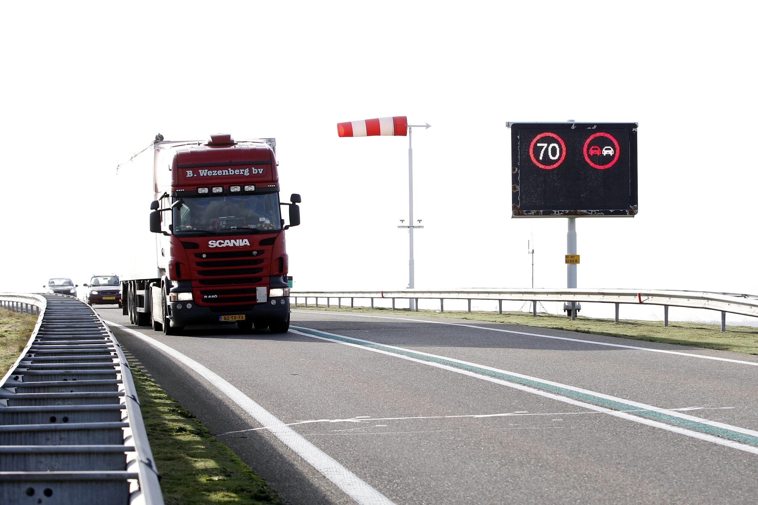 Foto: Zwaardere (en beladen) trucks ondervinden weinig hinder, maar op sommige punten gelden lagere maximum snelheden. (ANP)