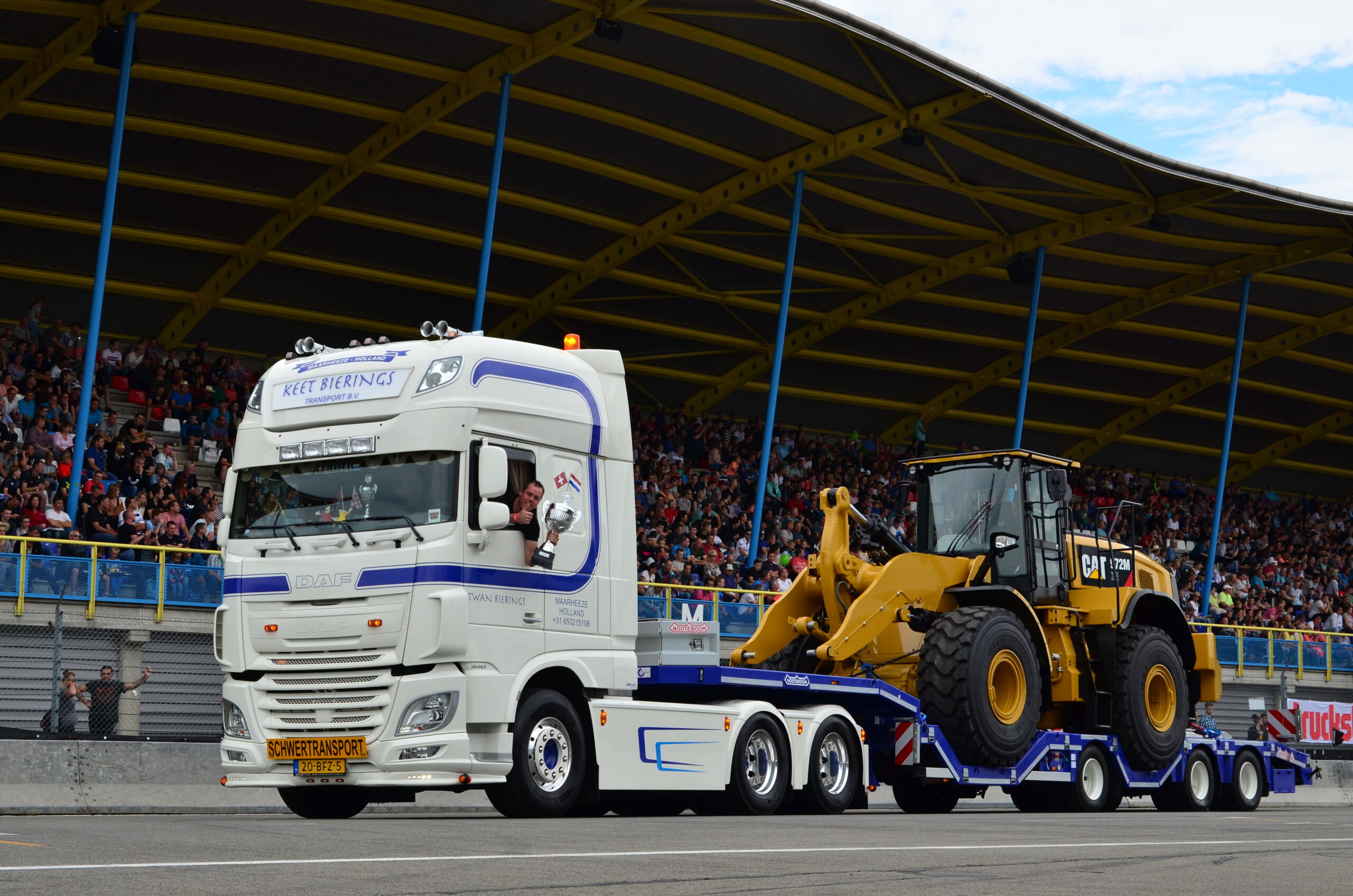 Een krachtpatser kun je de DAF gerust noemen, want in zijn dagelijks werd torst de DAF veelal zware lasten. Ook op het Festival was de Nooteboom dieplader-combinatie geladen met een flinke Caterpillar wiellader. Daarnaast heeft de DAF maar liefst 560 pk. Althans, dat doet het typeplaatje op de deur vermoeden. Rick legt uit: ,,Dat was een grapje van onze dealer bij de aflevering. Het is geen unieke krachtbron, maar gewoon een 510 pk trekker. Eigenlijk moet dat nog veranderd worden.”