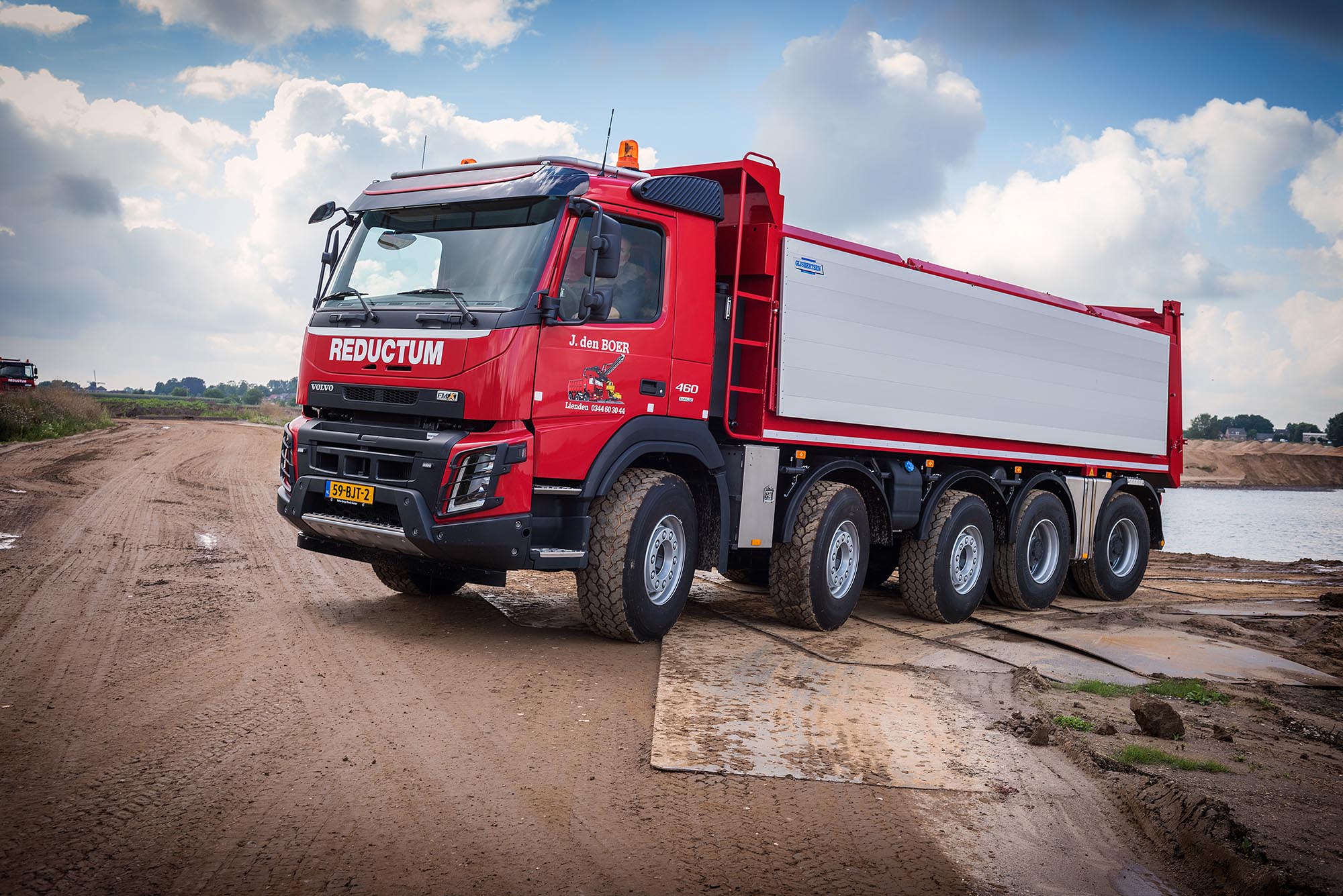 De maximale aslast van het oorspronkelijke tandemstel steeg door de widespread asconfiguratie met vier ton. Plaatsing van de vijfde as brengt het totale GVW op 53 ton (wettelijk 50 ton). Verboon: ,,We hebben de trucks laten uitrusten met een aslastindicator, zodat de chauffeurs het laadvermogen bij elke rit volledig kunnen benutten.” De Volvo FMX-kippers worden ingezet voor het transporteren van bijvoorbeeld klei naar dijkverzwaringswerken en steenfabrieken. Het is voor het eerst dat Reductum met vrachtwagens van Volvo aan de slag gaat. Tot dusver werden veelal GINAF’s ingezet.