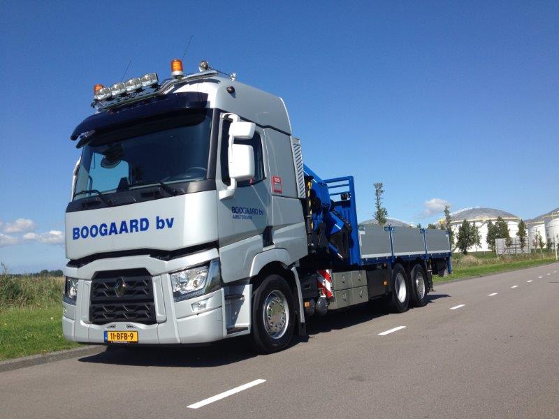 De truck heeft een Palfinger laadkraan die is uitgevoerd met zwenkpoten, waardoor componenten als AdBlue-tank, brandstoftank en accu’s niet verplaatst hoefden te worden. Door gebruik te maken van de Renault Trucks Body Builder site kon het voertuig van tevoren compleet door de carrosserie bouwer worden getekend, waardoor achteraf geen verassingen konden ontstaan. “Dit heeft ons veel tijd en geld bespaard in het aankooptraject. We zijn erg trots op het voertuig en zijn zeer te spreken over de gunstige prijs-kwaliteit verhouding”, besluit Barry Boogaard.