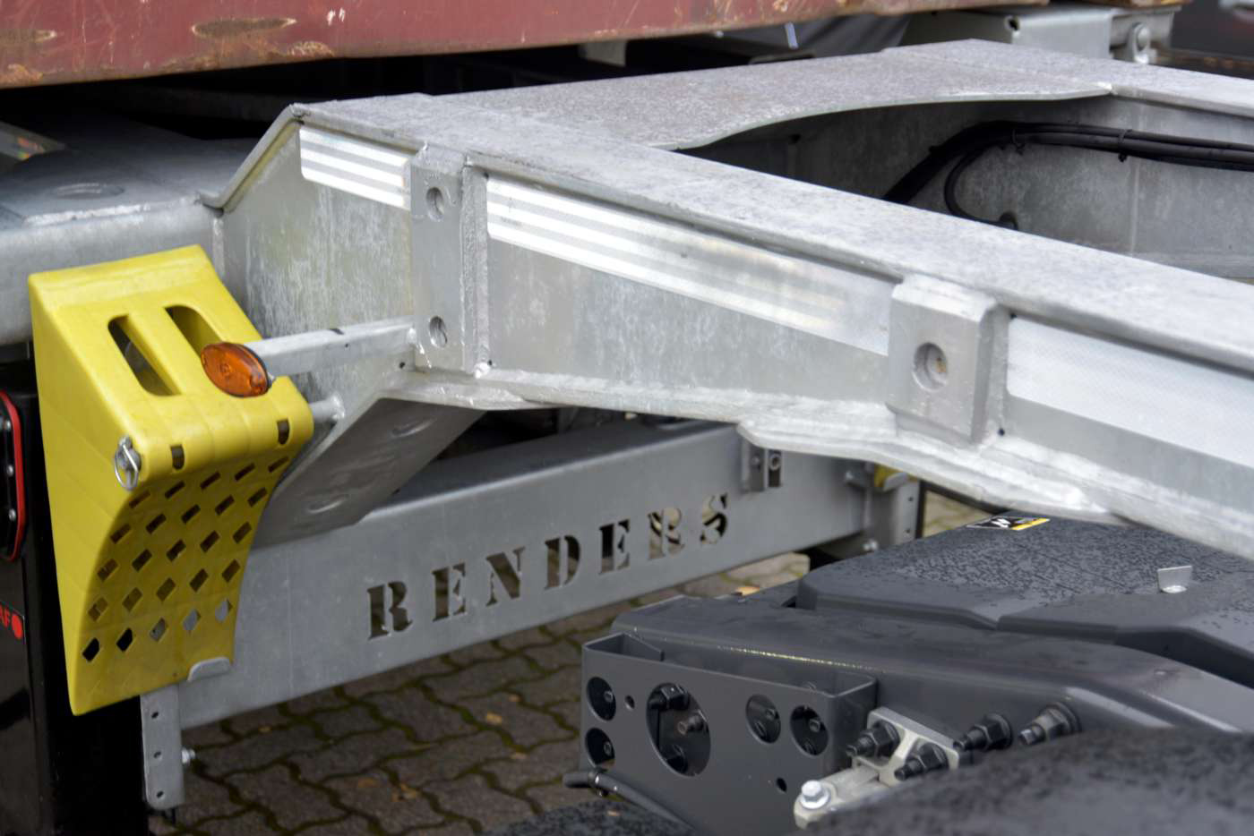 Renders heeft het standaardiseren tot kunst verheven met de nieuwe chassis. Niet alleen constructie-technisch in detail zijn de 800 en 900 serie voor een groot deel gelijk, dat geldt ook voor de nieuw ontwikkelde ‘hufterproof’ achterkalf met lichtbalk en bumper. Leidend bij het ontwerp was degelijkheid, stevigheid en praktisch gemak. Zo is o.a. de bumper voorzien van een ronde stootbalk om schade te voorkomen in het geval bij vervoer van 45 voet containers. Vanwege de standaardisatie is er enkel een keuze mogelijk voor dubbele, ronde achterlichten, SAF assen en een standaard liftas.