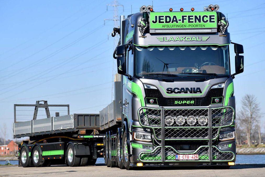 Jeda-Fence draagt kwaliteit en service hoog in het vaandel, en dat zijn dan ook de vereisten die Jef Dauwen stelt bij de keuze van een nieuwe vrachtwagen. “Scania past perfect bij het imago van ons bedrijf: kwalitatief hoogstaand, perfect afgewerkt en met bakken uitstraling. En dat geldt zeker voor onze nieuwe 770 S, die volledig in de kleuren van het bedrijf staat. De reacties onderweg liegen er niet om: dit is een juweeltje.”