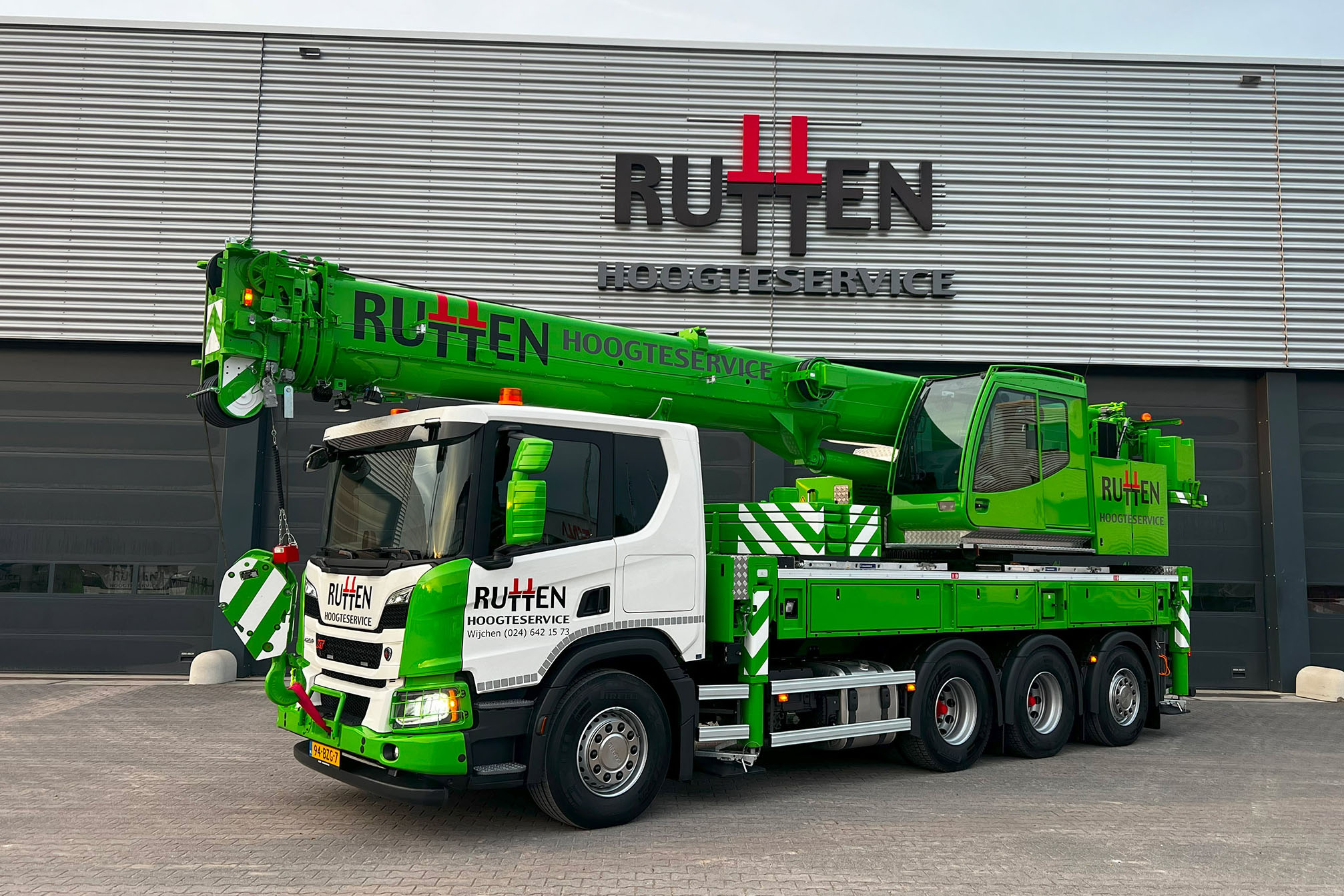 Kraanverhuurbedrijf Rutten Hoogteservice heeft een Scania 8×4*4 in gebruik genomen. Het voertuig is voorzien van een Tadano HK 50 telescoopkraan en wordt ingezet voor de bemande verhuurdiensten. Het rijcomfort was een belangrijke reden om voor Scania te kiezen.