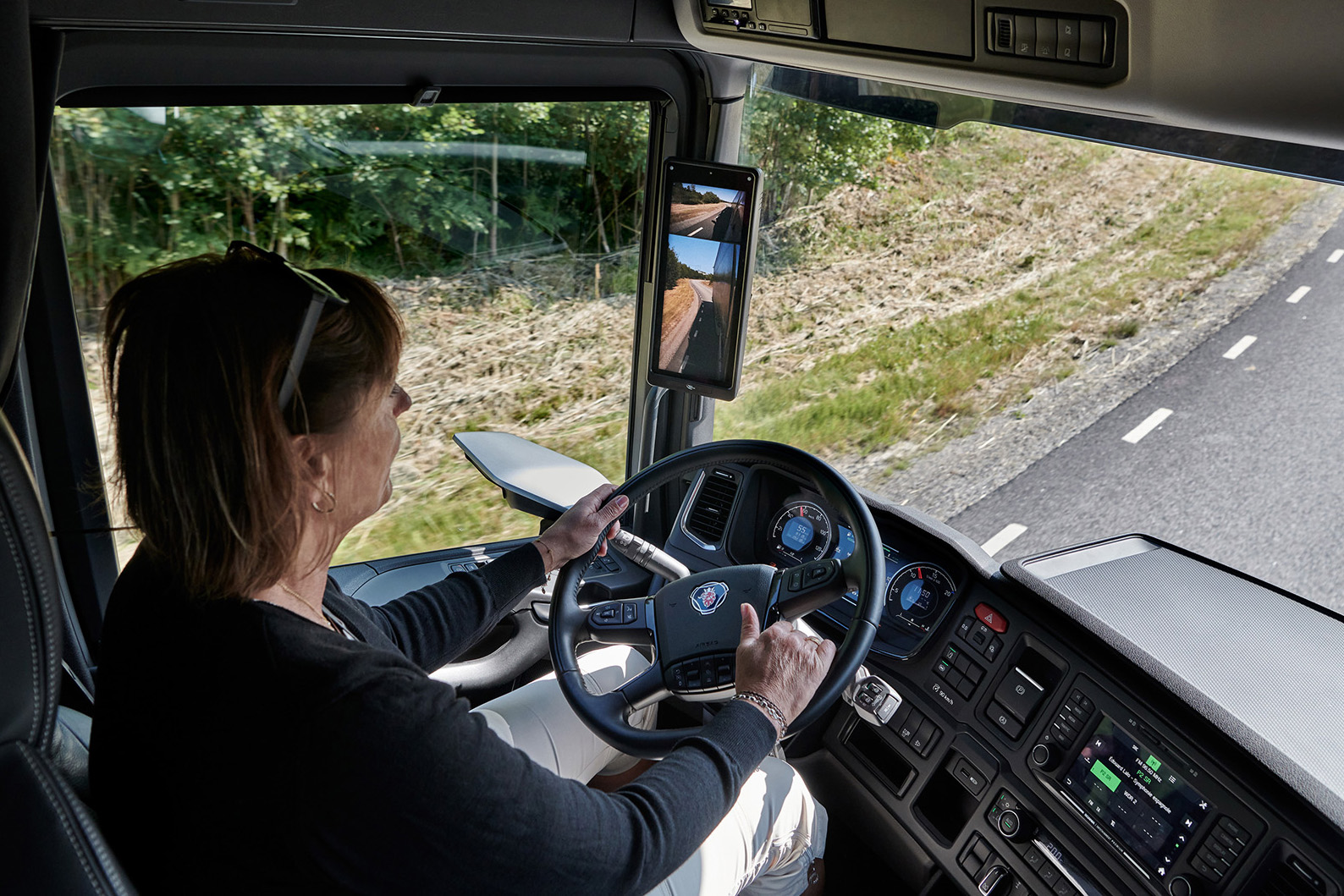 “Het unieke ontwerp van ons spiegelsysteem betekent dat de chauffeur altijd het uiteinde van het voertuig op het display kan zien”, zegt Hellberg. “Ook is het camerasysteem eenvoudig en op een natuurlijke manier aan te passen aan verschillende voertuigcombinaties. En zonder de traditionele spiegels neemt het gezichtsveld naast de A-stijlen duidelijk toe.”