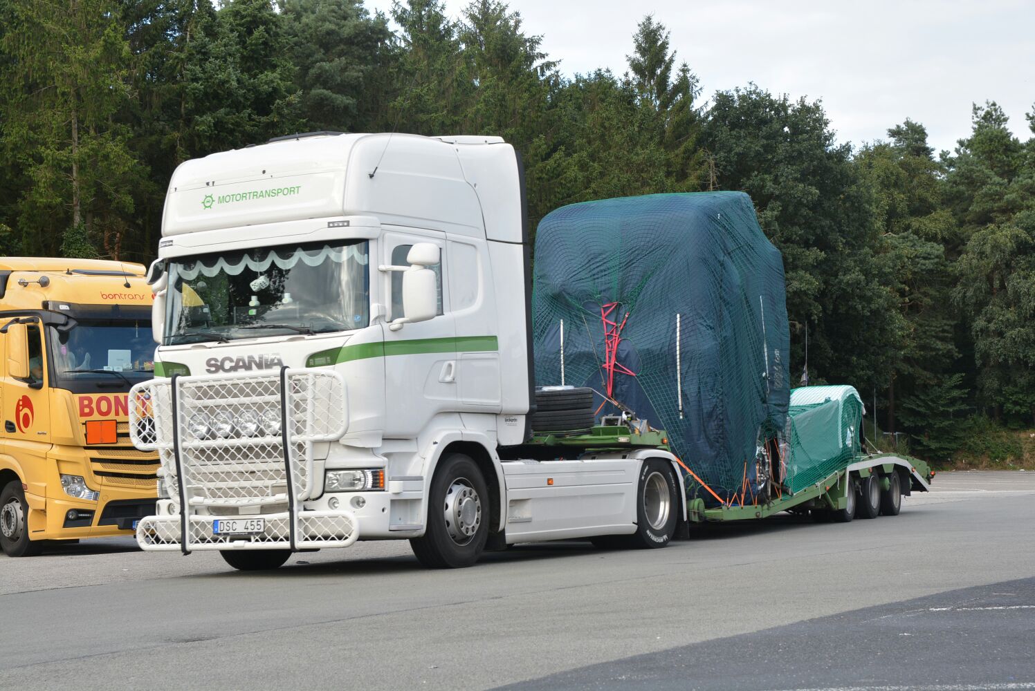 Truckstar-medewerker Marco Bloem stuitte deze week bij toeval op een heus konvooi van trucktransporters die onderweg waren met zeven nieuwe Scania’s. Alle trekkers waren volledig afgedekt, waardoor zelfs de introductiekleur niet te achterhalen is. Duidelijk is wel dat de vormgeving overeenkomt met de foto’s van  schaalmodellen die eerder uitlekten.