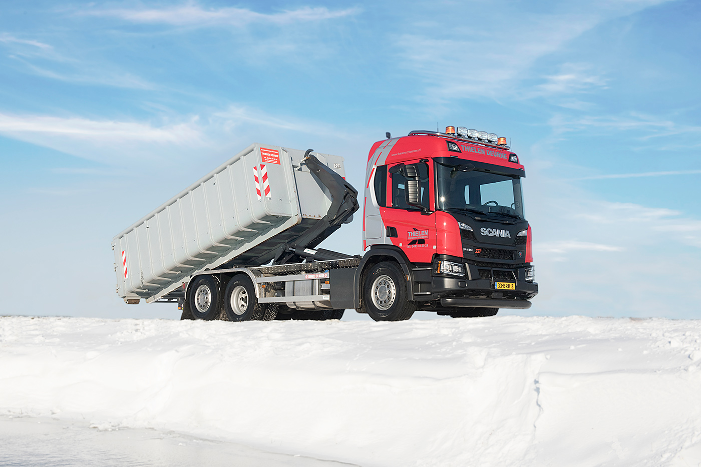 Thielen Containertransport in Deurne nam afgelopen week een nieuwe Scania P410 6×2*4 containerwagen met haakarmsysteem in gebruik. De derde alweer in amper drie jaar. Directeur Jurgen Thielen is dan ook volledig overtuigd geraakt van de kwaliteit van het merk. “Wij rijden lang met onze trucks. En dan zie je dat een Scania er na 10 jaar nog mooi strak bijstaat.”