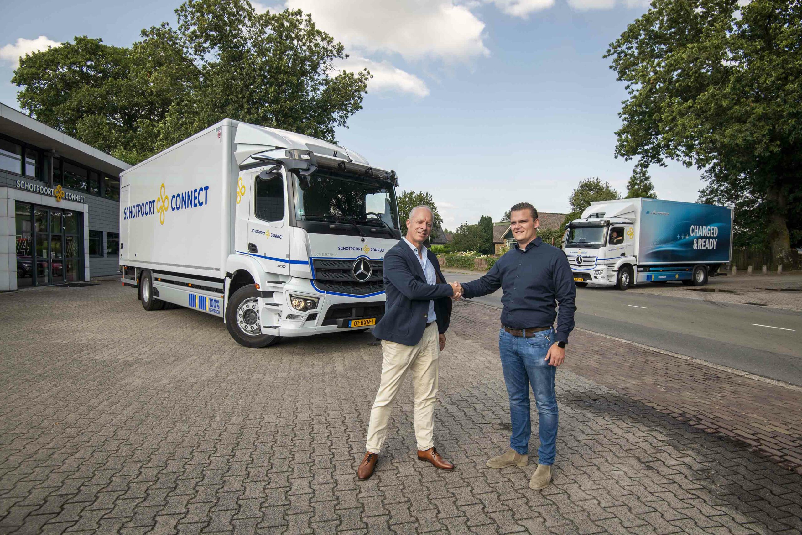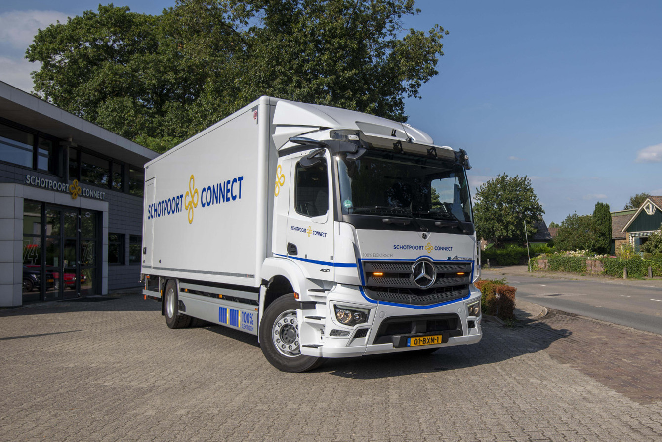Schotpoort Connect heeft twee volledig elektrische eActrossen in gebruik genomen. De twee bakwagens, de eActros 300 en eActros 400, hebben een actieradius van respectievelijk 300 en 400 kilometer. Om ervaring op te doen met de elektrische trucks van Mercedes-Benz had Schotpoort Connect een eActros 300 in bruikleen. Die beviel zó goed dat het bedrijf uit Eerbeek vol vertrouwen een eActros 400 bestelde.