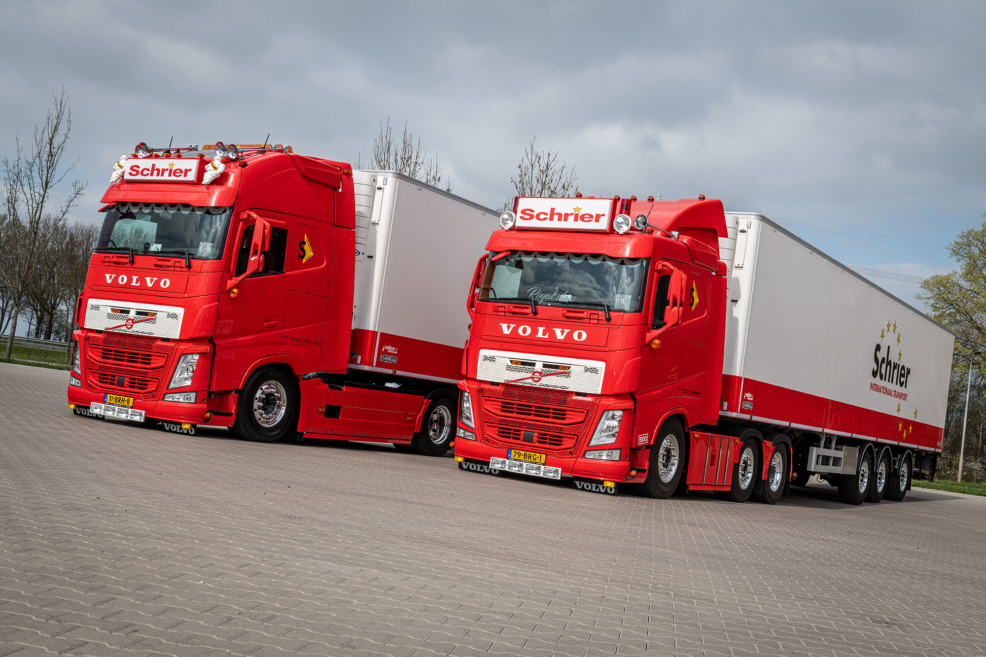 Voor het geconditioneerd transport van bloemen, planten en levensmiddelen heeft Schrier Int. Transport uit Rilland onlangs twee Volvo FH I-Save-trekkers met de Turbo Compound-motor in gebruik genomen. Volvo Trucks-dealer Bluekens Truck en Bus leverde de trucks en verzorgde het spuitwerk.