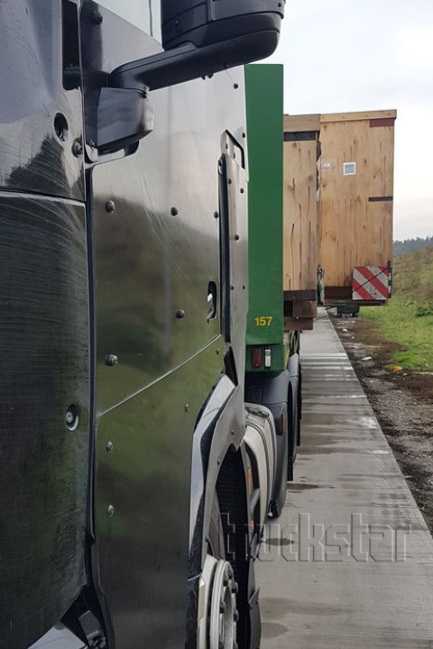 Of de nieuwe DAF ook een neusje krijgt, is op grond van de foto’s niet goed op te maken. Volgens de nieuwe regels mogen trucks 90 centimeter langer worden. Zowel aan de voorkant als aan de achterkant van de cabine mogen voorzieningen worden aangebracht om de stroomlijn te verbeteren. Hoe dat bij de nieuwe DAF gaat uitpakken, zullen we pas weten als de truck officieel gepresenteerd wordt, na afloop van de veldtesten. Die gaan vermoedelijk nog een jaar duren.