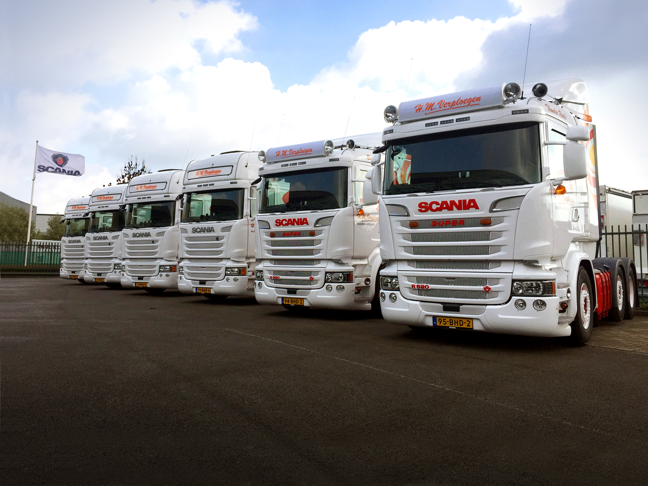 H.M.Verploegen is gespecialiseerd in de distributie van stukgoed van en naar Frankrijk, Duitsland en de Benelux. De twee Scania’s R520 6×2 V8 met voorloopas worden vooral ingezet voor het vervoer van bouwmaterialen in de Benelux.