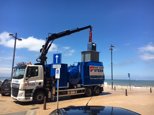 Voorheen waren er twee vrachtwagens nodig voor het reinigen van één container. Van der Steen: ‘Eén voor het wassen van de container en één voor het reinigen van de put. Dankzij de speciale opbouw van de DAF kunnen we dat nu met de inzet van één truck doen.’ De container wordt in de speciale opbouw geplaatst en op een temperatuur van 80 graden schoongemaakt. Tegelijk krijgt ook de put waar de container normaal gesproken in staat, een flinke poetsbeurt.