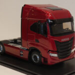 Nog een fabrikant van trucks in de grote schaal 1:18. Het leveringsprogramma omvat inmiddels modellen van onder meer Scania, Volvo, Mercedes en MAN. Daar komt nu deze Iveco Turbostar bij. Men wilde hem op de Spielwarenmesse voor de foto niet uit de vitrine halen maar dit geeft toch een indruk.