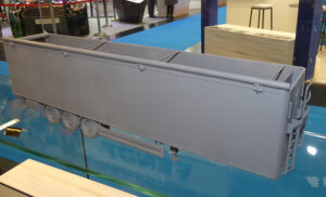 Deze Nederlandse fabrikant is het aantal vrachtwagens in schaal 1:32 lekker aan het uitbreiden. Na de Volvo FH en Mercedes Actros stonden er nu twee prototypes van een Scania NGS in de vitrine. Net als bij de andere trucks komt er een 4×2 trekker en een 6×2 met voorloopas. Marge kiest voor de R cabine met Highline dak. Ergens derde kwartaal van dit jaar zou hij op de markt moeten komen. Als vierde merk is een Renault T in ontwikkeling. Op het gebied van opleggers wordt er gewerkt aan een Knapen walking floor met echt afdekzeil. Ander nieuws is er in de vorm van een Nooteboom oplegger met of zonder dolly waar mooi de nieuwe vierassige zwaar transportvariant van de Volvo FH trekker voor past.