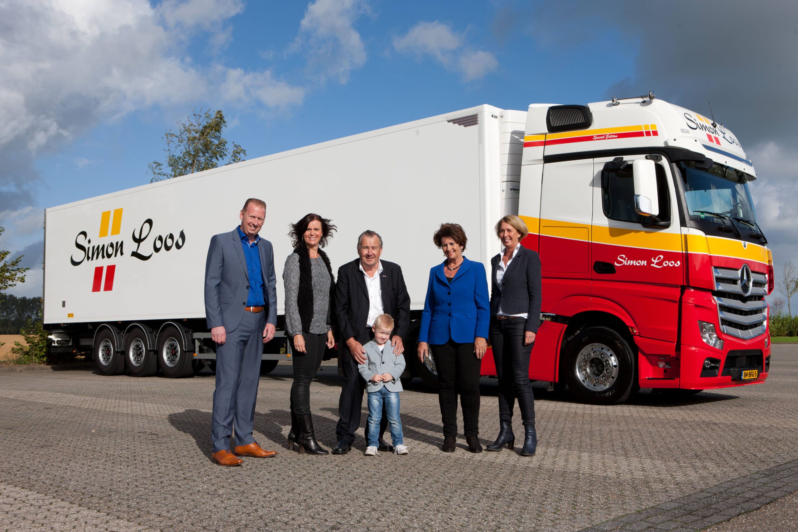 Voor de bijzondere gelegenheid was niet alleen de huidige directie – de derde generatie familie Loos, Simon en Angelique Loos – maar ook vader Piet Loos aanwezig. Simon Loos: “Op een gegeven moment kwamen we er eigenlijk samen met de dealer achter dat deze vrachtwagen de 500e Actros zou zijn en de 750e Mercedes-Benz. Het leek ons dus gepast om daar, samen met Mercedes-Benz, een extra tintje aan te geven door er een auto uit te lichten en die wat anders en specialer uit te voeren als zijnde de 750e Mercedes-Benz. Dit om de relatie die al terug gaat tot 1981 te bezegelen.”