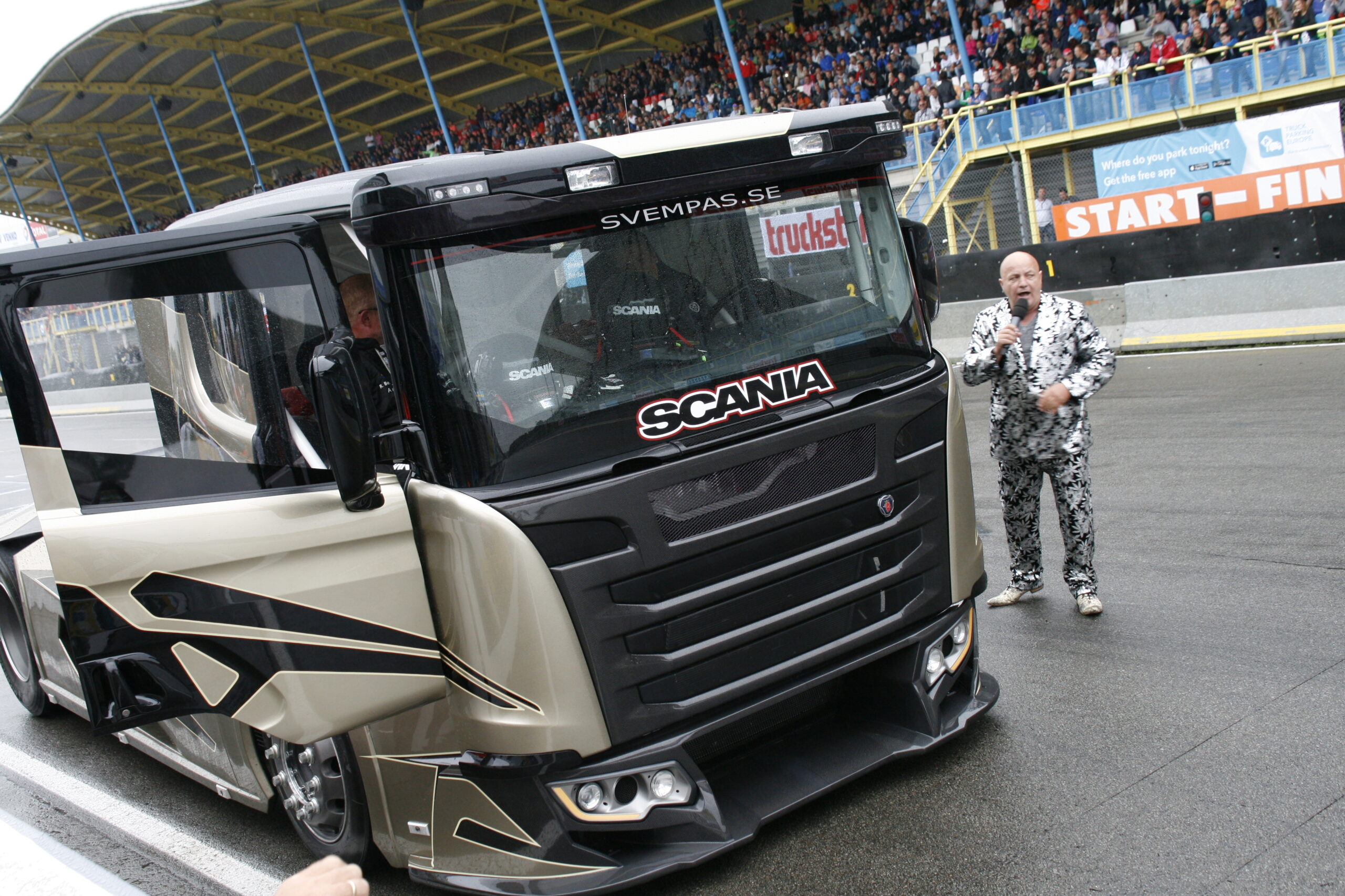 Zowel zaterdag als zondag is de Scania Chimera van Svempa in actie te zien op het rechte stuk voor de tribune.