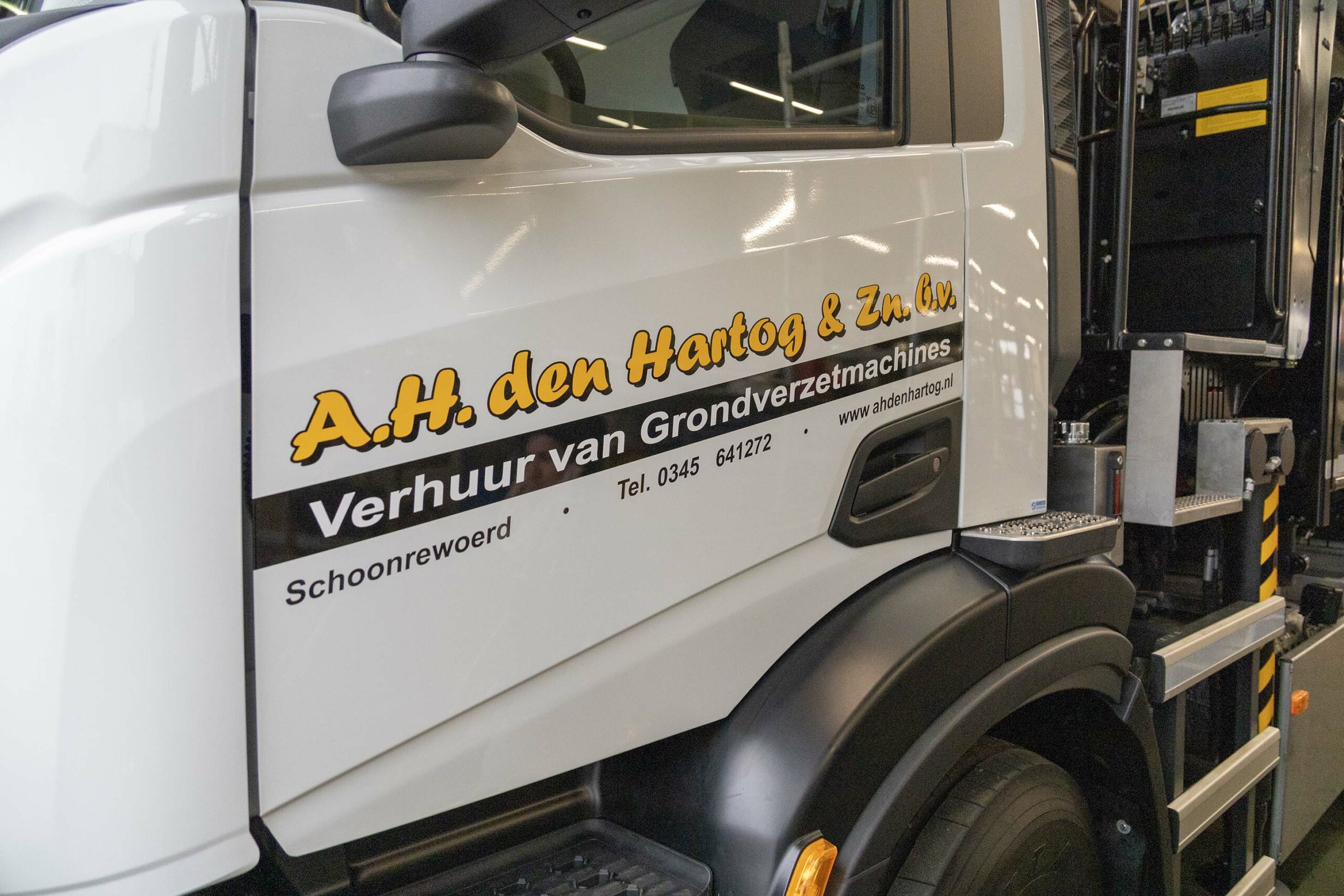 AH den Hartog & Zn heeft hun oude Iveco 6×6 Trakker vervangen door een nieuwe Iveco T-Way 6×4 met een 510pk Cursor 13 motor. De auto wordt ingezet voor verschillende projecten in de aannemerij. Het voertuig is als eerste Iveco in Nederland voorzien van het Veldhuizen Hydro WSG Widespread systeem.