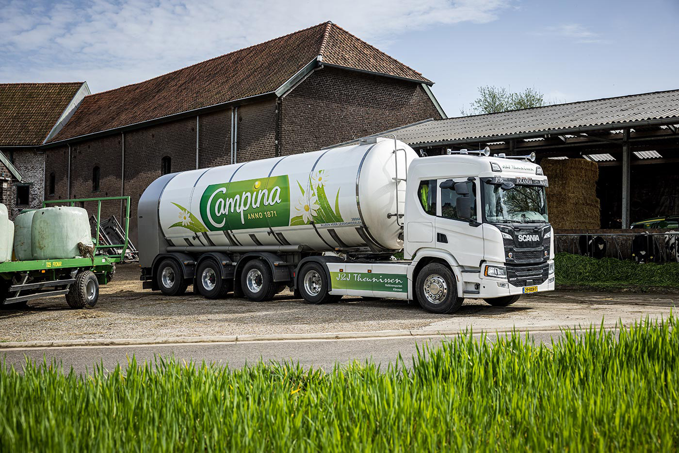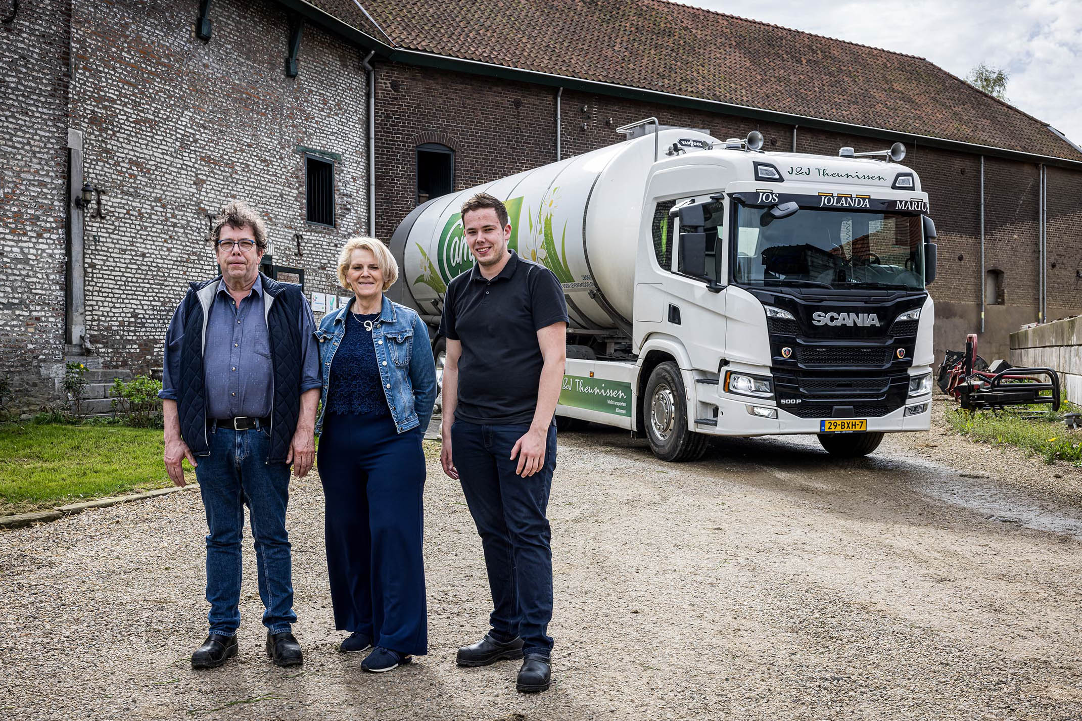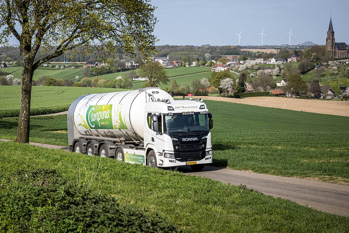Transport- en Handels- onderneming J. & J. Theunissen rijdt 365 dagen per jaar door de weilanden tussen Vijlen en Ysselsteyn om melk op te halen bij Limburgse veehouderijen en vervolgens af te leveren bij de kaasfabriek van Friesland Campina in Born. Sinds kort wordt daarvoor een gloednieuwe Scania P500 ingezet.