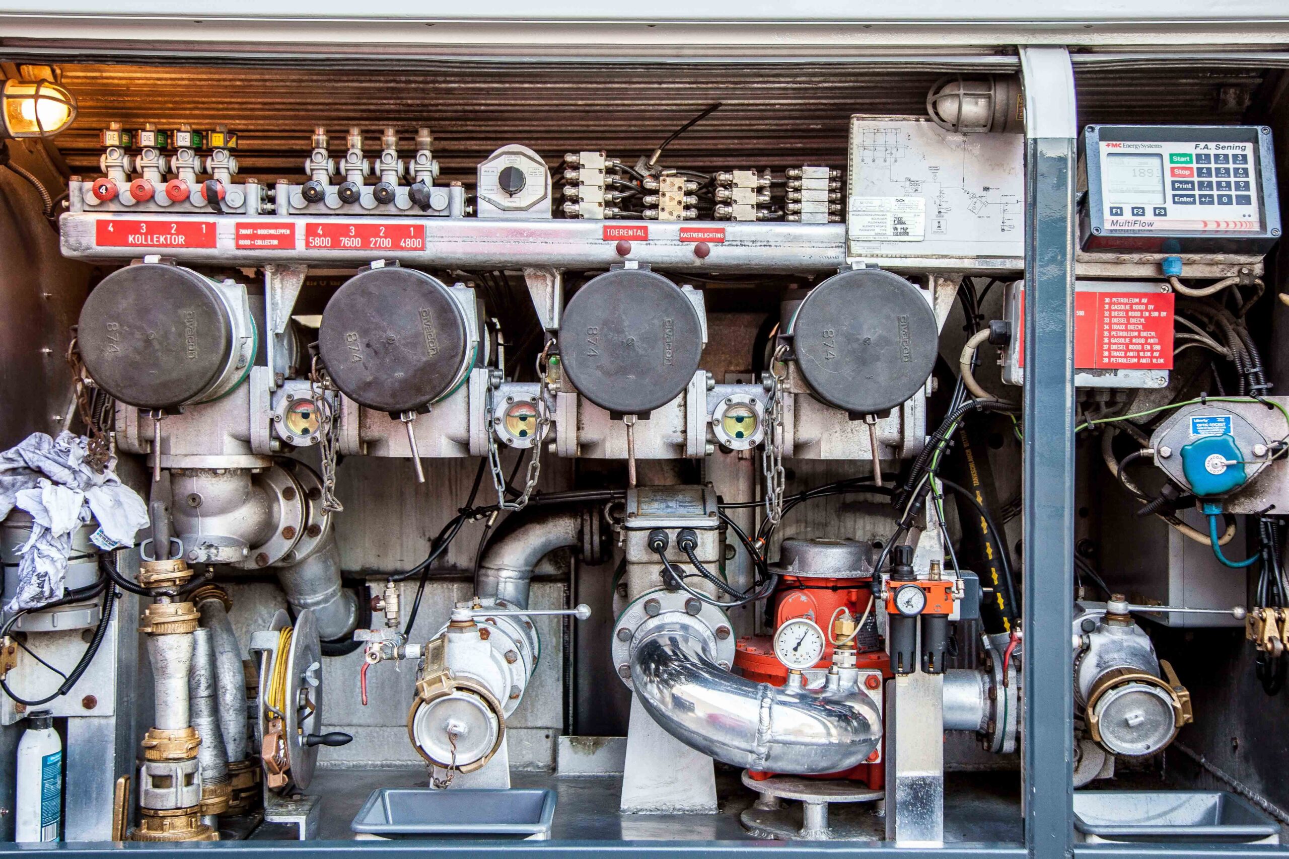 Voor we kunnen lossen, rijden we eerst naar Sneek. Daar zit het brandstofdepot waar de tankwagen geladen wordt met de vracht voor vandaag: dieselolie. Mark rijdt naar het depot en sluit alles aan. Aarding, afzuiging, vulslang – en dan is het pompen geblazen. Binnen 30 minuten is de tankwagen gevuld. Er zat nog wat diesel in en zojuist heeft Mark er nog eens ruim 15 duizend liter bijgedaan. De totale capaciteit van de tank is 21 kuub. Ruim voldoende voor de eerste vijf losadressen, gokt hij.
