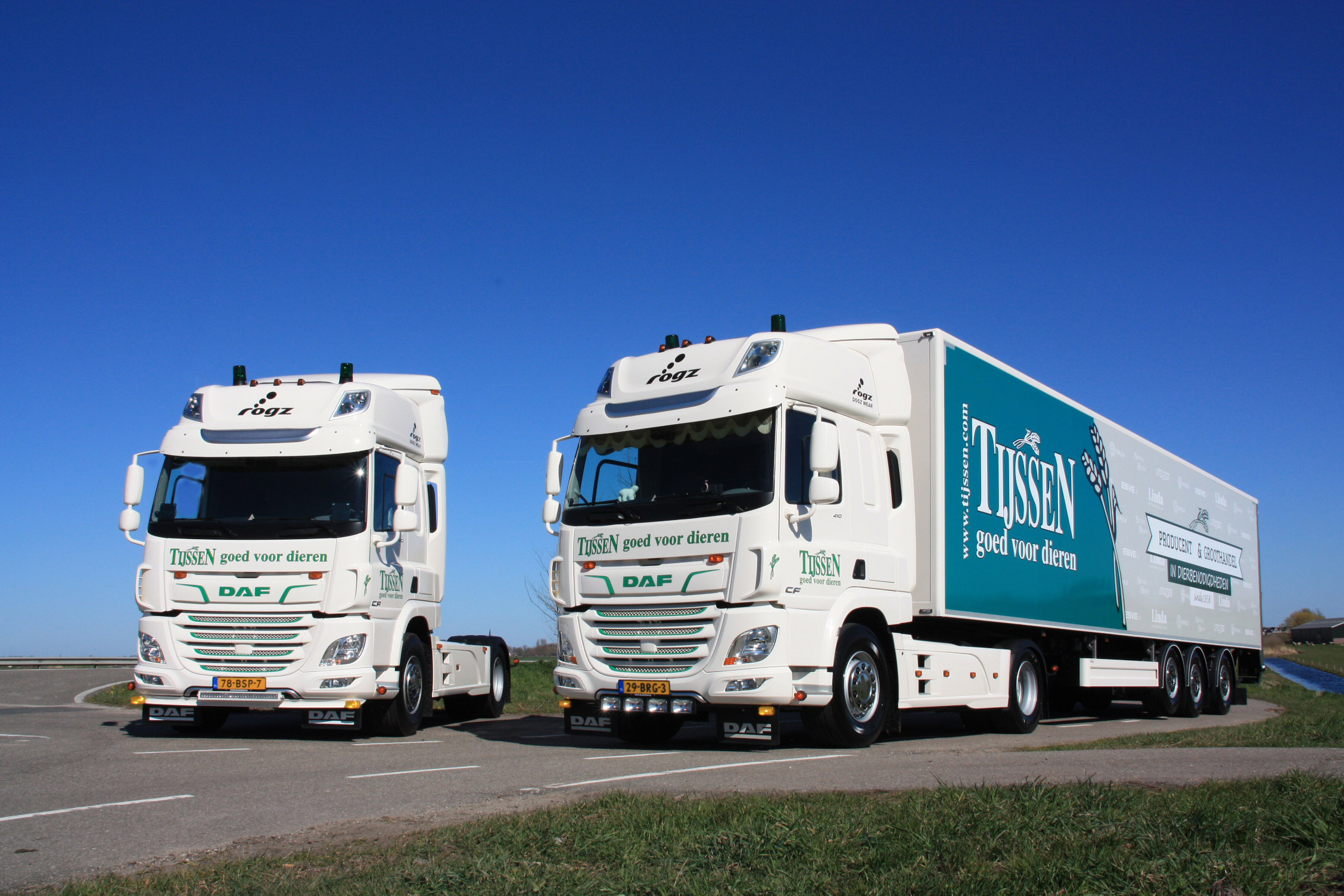 De twee nieuwe DAF-trekkers zijn uitbreiding van het wagenpark, dat nu uit 10 voertuigen bestaat. Het werk is toegenomen bij Tijssen. Volgens Hans van de Wiel vooral de laatste paar jaar, onder meer doordat meer mensen een huisdier hebben genomen ten tijde van corona. De eerste nieuwe CF 410 is vorig jaar geleverd en recent is de tweede in gebruik genomen. De trekkers zijn van alle gemakken voorzien, zoals een luxe chauffeursstoel, DEB motorrem, met leder bekleed stuurwiel, audiosysteem met navigatie en camera´s voor de dodehoek en voor zicht achter de oplegger. Aan de buitenkant zijn ze voorzien van extra verlichting en zijn de spiegels, zonneklep en de grille in de lakkleur meegespoten.