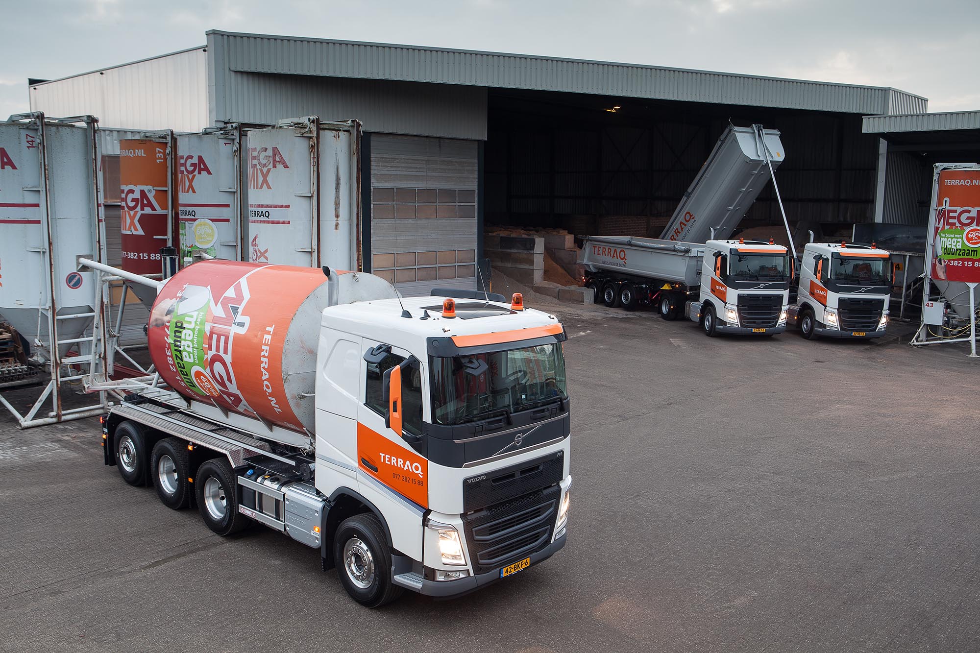 Terraq Venlo verruilde recentelijk een Volvo-truck uit 1999 voor drie nieuwe vrachtwagens: een Volvo FH 8×4 tridem en twee Volvo FH 4×2-trekkers.
