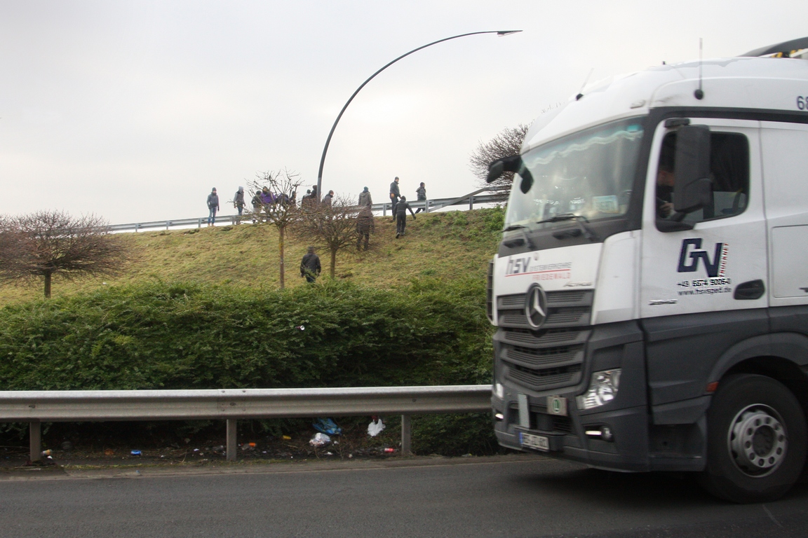 Zoals op de video kort te zien is, werpen de illegalen blokkades op om trucks tot stoppen te dwingen. Want stilstaande trucks kunnen benaderd worden en in veel gevallen kan er toegang verschaft worden. Deze files ontstaan ook als de illegalen met honderden tegelijk de Eurotunnel-terminal aanvallen. Dan wordt de treindienst stilgelegd. Chauffeurs komen ook dan op de toegangswegen stil te staan en lopen enorme risico’s.
