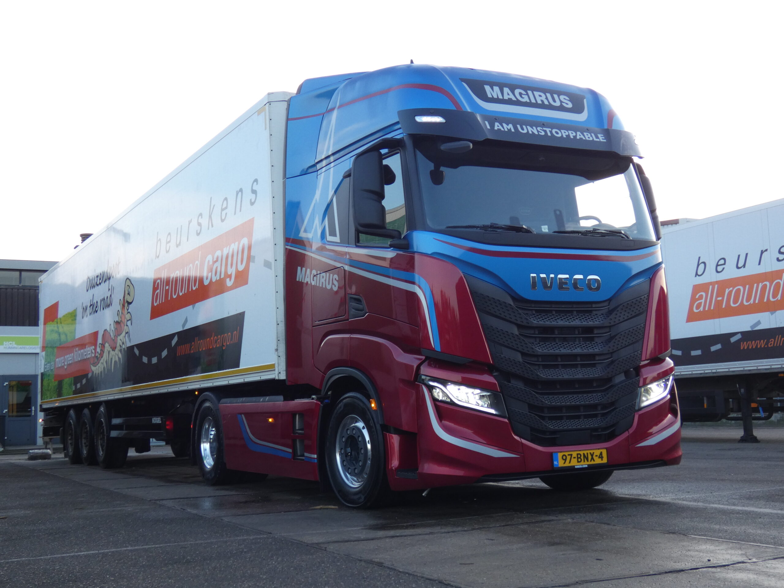Het is net een beetje licht aan het worden als we op maandagochtend 07:30 uur een woonwijk aan de rand van Venlo inrijden. Even bekruipt ons het gevoel dat we niet goed zitten. Achter de huizenrij blijkt echter een groot industrieterrein te zijn waar Beurskens gevestigd is. Er zijn diverse loodsen, een groot parkeerterrein en zelfs een eigen wasstraat. Dit is best een grote firma waar met diverse merken wordt gereden, waaronder Iveco.