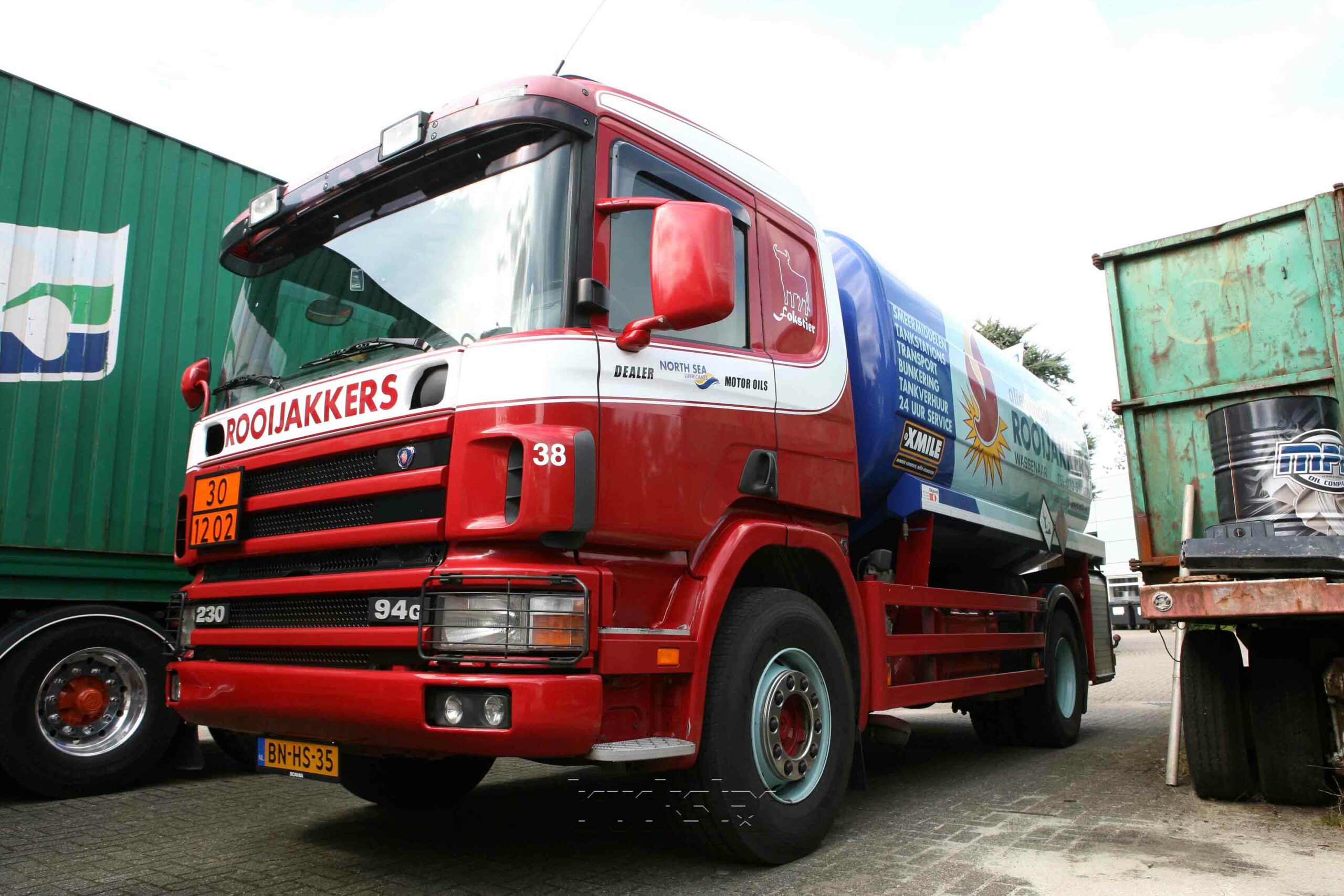 Als het aan Leo had gelegen, was de Scania R410 er niet geweest. Die kwam in de plaats van, ja, een neus. Preciezer: een Scania 114L 380 4×2-trekker uit 2000. René van Santen, dé chauffeur bij Rooijakkers (hij en Leo zijn degenen die rijden), wilde er op een gegeven moment niet meer mee de weg op. De wagen zwabberde volgens hem tijdens het remmen. Leo ging overstag en schafte de Next Gen voor hem aan, een ex-Schenk-wagen. René dolgelukkig, Leo verdrietig, want van deze neus, die de naam Rooije-Stier droeg, heeft de brandstofondernemer alleen nog maar foto’s. Dat ligt nog steeds gevoelig. „Ik kon hem nergens kwijt”, zegt hij verontschuldigend over waarom hij met zijn eigen regel brak. Elke keer als hij de wagen in een verkoopadvertentie voorbij zag komen, voelde hij de pijn van zijn beslissing weer. „Ik was blij dat hij op een gegeven moment uit het zicht was verdwenen.”