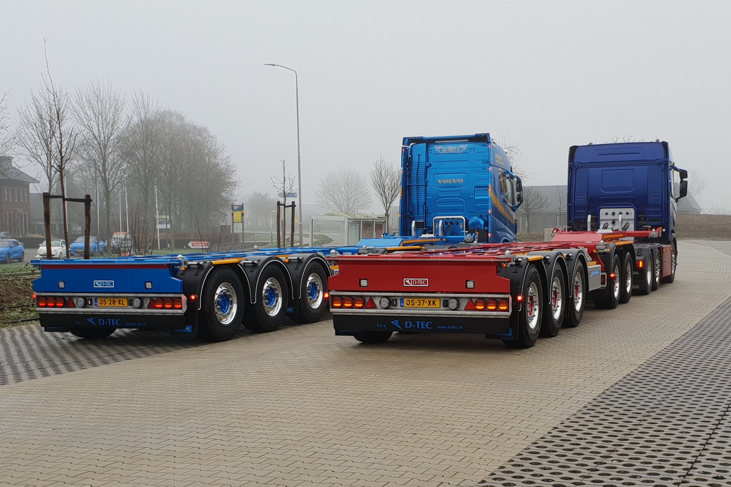 D-Tec Trailers heeft twee unieke combitrailers gebouwd voor zijn klanten LFM Transport en Reho BV. Het gaat om vijfassige CT521 trailers met SAF-schijfremassen.