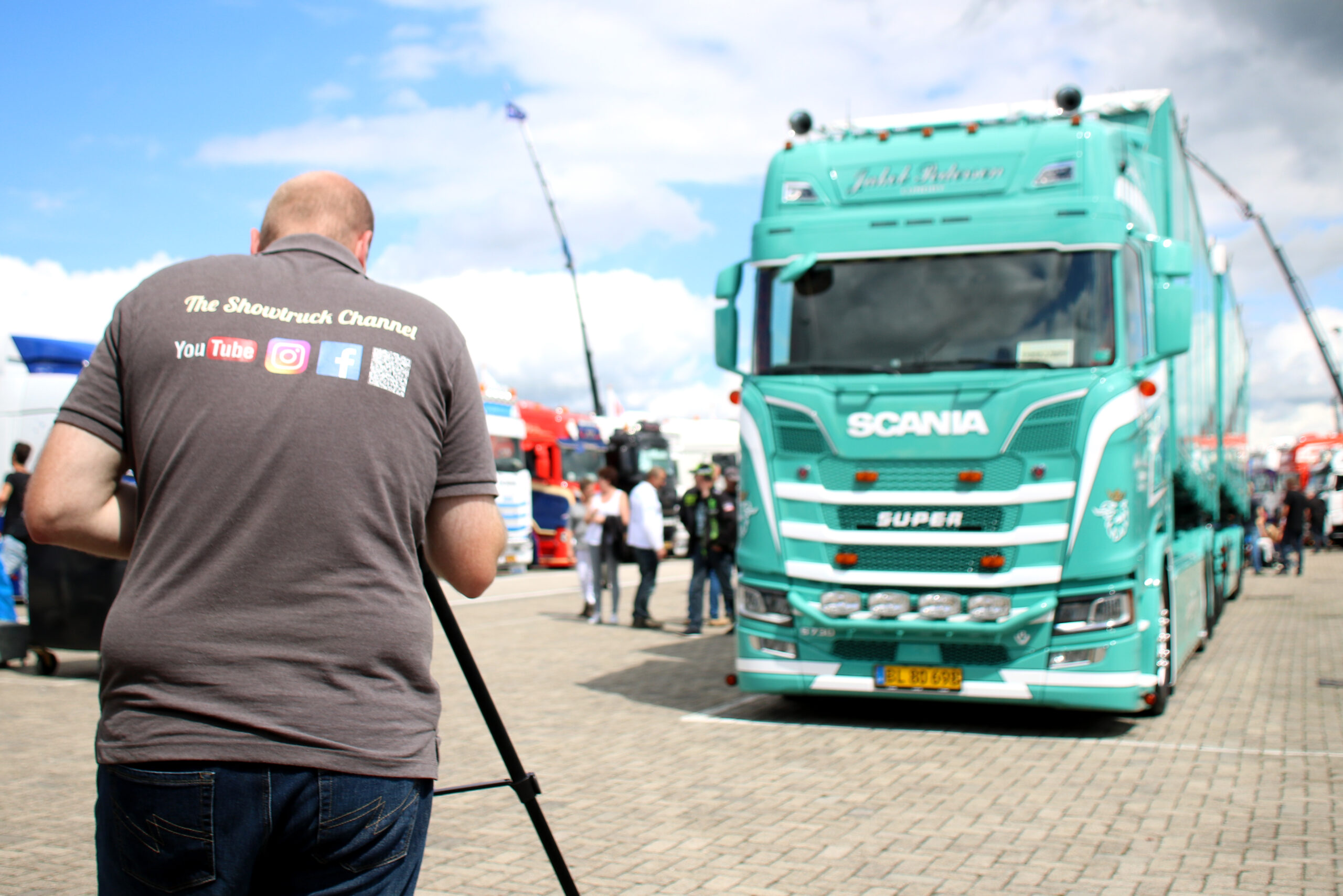 William Siben, eigenaar van YouTube kanaal en Facebook pagina The Showtruck Channel plaatst zijn statief voor de nieuwe van Jacob Pedersen. ,,Ik ben nu zo’n drie jaar bezig met deze hobby en het krijgt steeds serieuzere vormen. Ik moet nog veel leren, maar met mijn drone en ander foto- en videomateriaal maak ik steeds professionelere producties’’. William heeft vandaag voldoende keuze, want het aantal binnen- en buitenlandse showtrucks lag nog nooit zo hoog!
