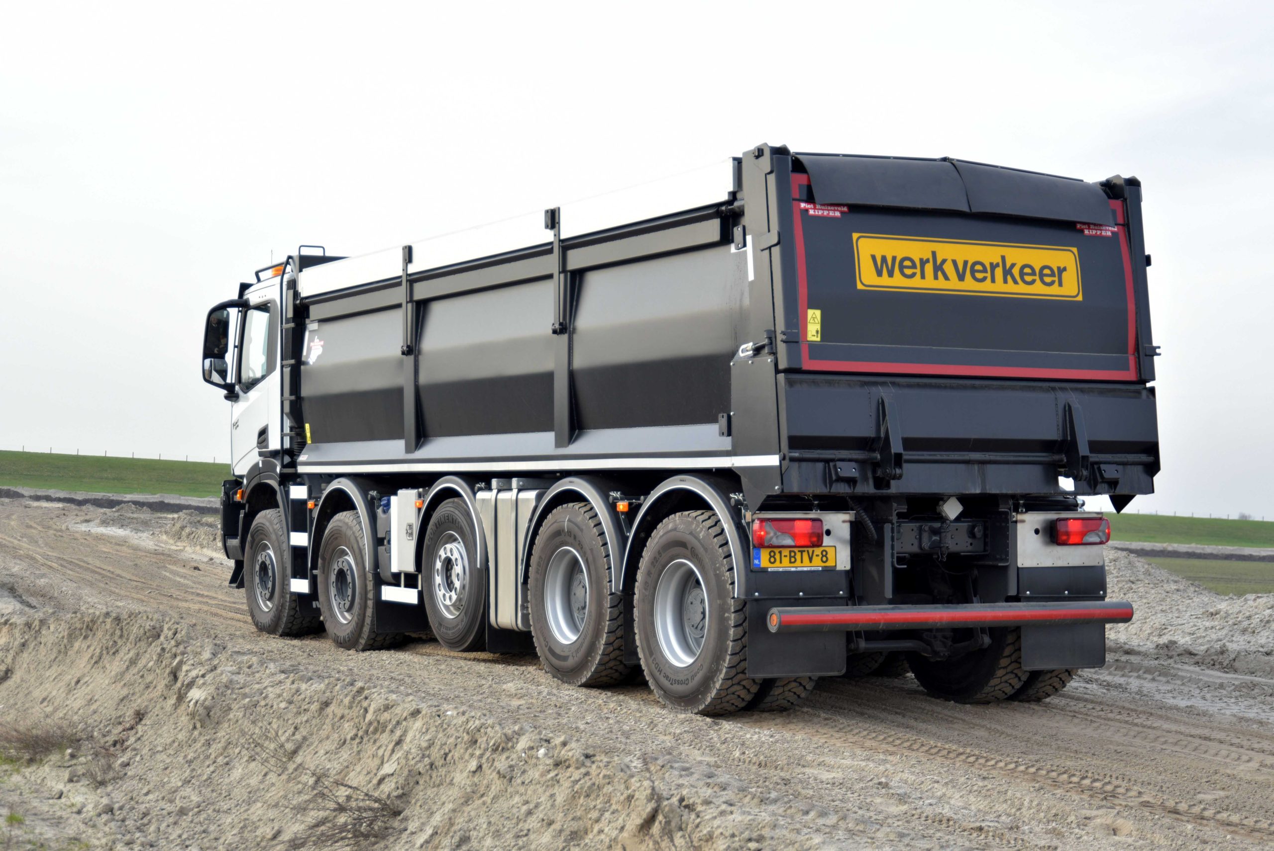 De Iveco T-Way 10×4 kwam als 8×4 uit de fabriek, waarna Veldhuizen Trucks er een luchtgeveerde, liftbare en sturende middelste as onder bouwde. Het resultaat is een 10×4 met een laag eigen gewicht, een robuuste bouw en een hoog netto laadvermogen. Door de extra as ontstond er een kipper met een totaal terreingewicht van 49 ton op kenteken. Het eigen gewicht van de opgebouwde kipper, compleet met een geïsoleerde Ruizeveld kipperopbouw mét asfaltsnip en milieukleppen bedraagt slechts 18.650 kilo. Dat betekent dus een netto laadvermogen van 30,35 ton.