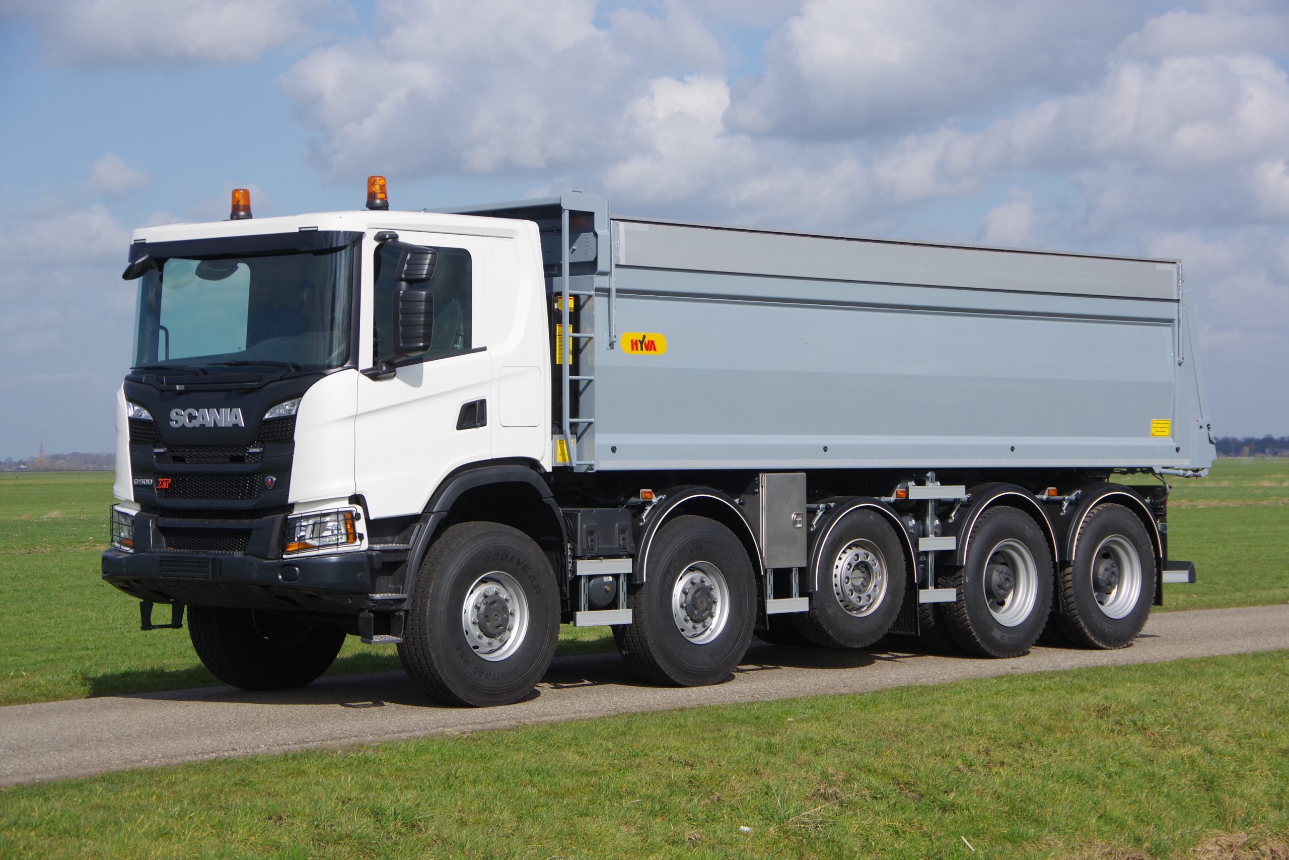 Scania levert met de XT-serie bouwvoertuigen voor het zware werk. Met aangedreven voorassen omvat het leveringsprogramma af fabriek diverse uitvoeringen tot en met de 8×8 configuratie. Voor de typisch Nederlandse wetgeving bouwt Veldhuizen Wagenbouw op basis van die 8×8 een 10×8 uitvoering. Daardoor wordt het maximale GVW van 49 ton bereikt.