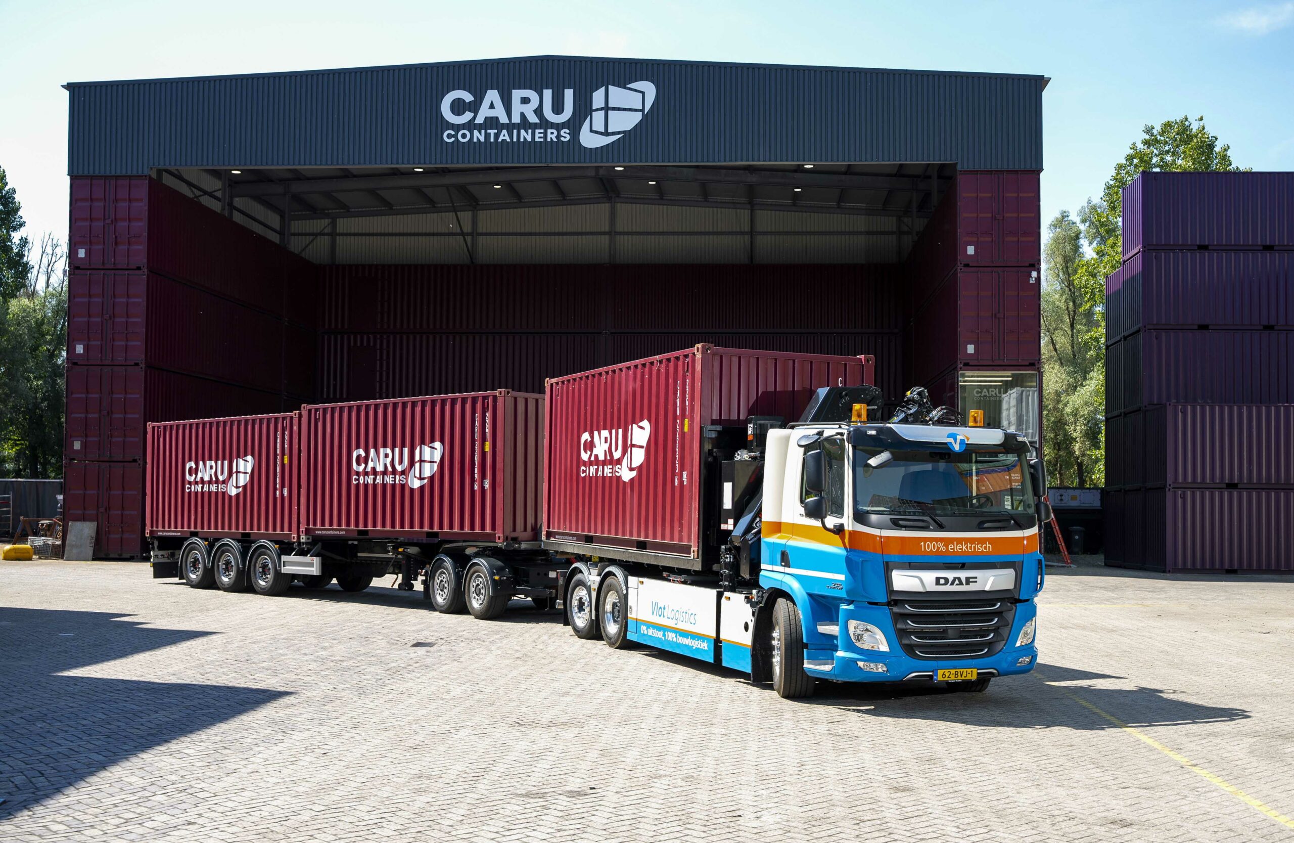 “We gebruiken deze onder meer voor vervoer van huurcontainers”, vertelt Rokus Vlot, directeur-eigenaar van Vlot Logistics. “Met de LZV-combinatie kunnen we drie 20ft containers in een keer meenemen of een 40ft en een 20ft container en dat is weer een groot voordeel als het gaat om de transportbewegingen te beperken. Dubbele winst dus. Voor het klimaat en voor de congestie. Het laat zien dat er vanuit technologisch oogpunt grote stappen gemaakt zijn op het gebied van zero emissie-voertuigen.”