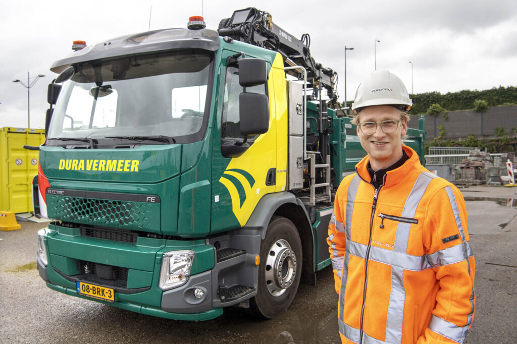 “De meeste elektrische vrachtauto’s die nu rijden, zijn omgebouwde varianten. Volvo Trucks is de eerste fabrikant die elektrische vrachtwagens volledig direct vanaf de fabrieksband produceert. Dit is een stuk duurzamer omdat er niet eerst dieselcomponenten geproduceerd zijn”, licht Sander Haagedoorn, bedrijfsleider wegen Dura Vermeer Infra Regio Noord West toe.