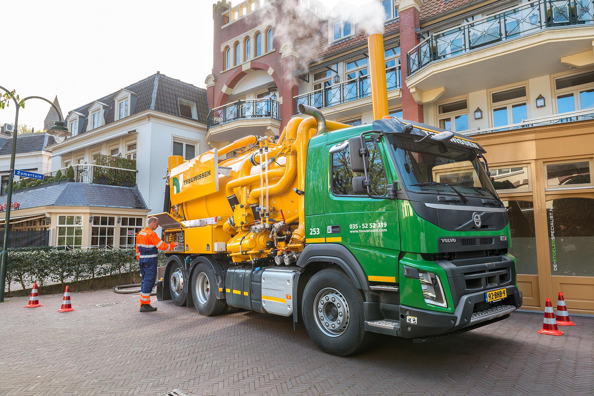 De Volvo FM-trekker is gebouwd volgens alle geldende veiligheidseisen voor vervoer van gevaarlijke stoffen. Met behulp van de druk-/vacuümoplegger wordt olie, water en slib uit olieafscheiders van onder meer garagebedrijven en wasstraten ingenomen en bij Teeuwissen in Huizen verwerkt. Bijzonder aan het voertuig zijn de zogenaamde zadeltastanks aan weerskanten van de vacuümtank. “Door deze speciale tank kunnen we 4000 liter water meenemen en hoeven we minder heen en weer te rijden om een geleegde olieafscheider opnieuw af te vullen met daartoe geschikt water”, legt technisch directeur Joost Teeuwissen uit. “Door het aantal vervoersbewegingen te drukken, verhogen we onze productiviteit en reduceren we de CO2-uitstoot. Dat is belangrijk, onze missie is om zo milieuvriendelijk te werken.”