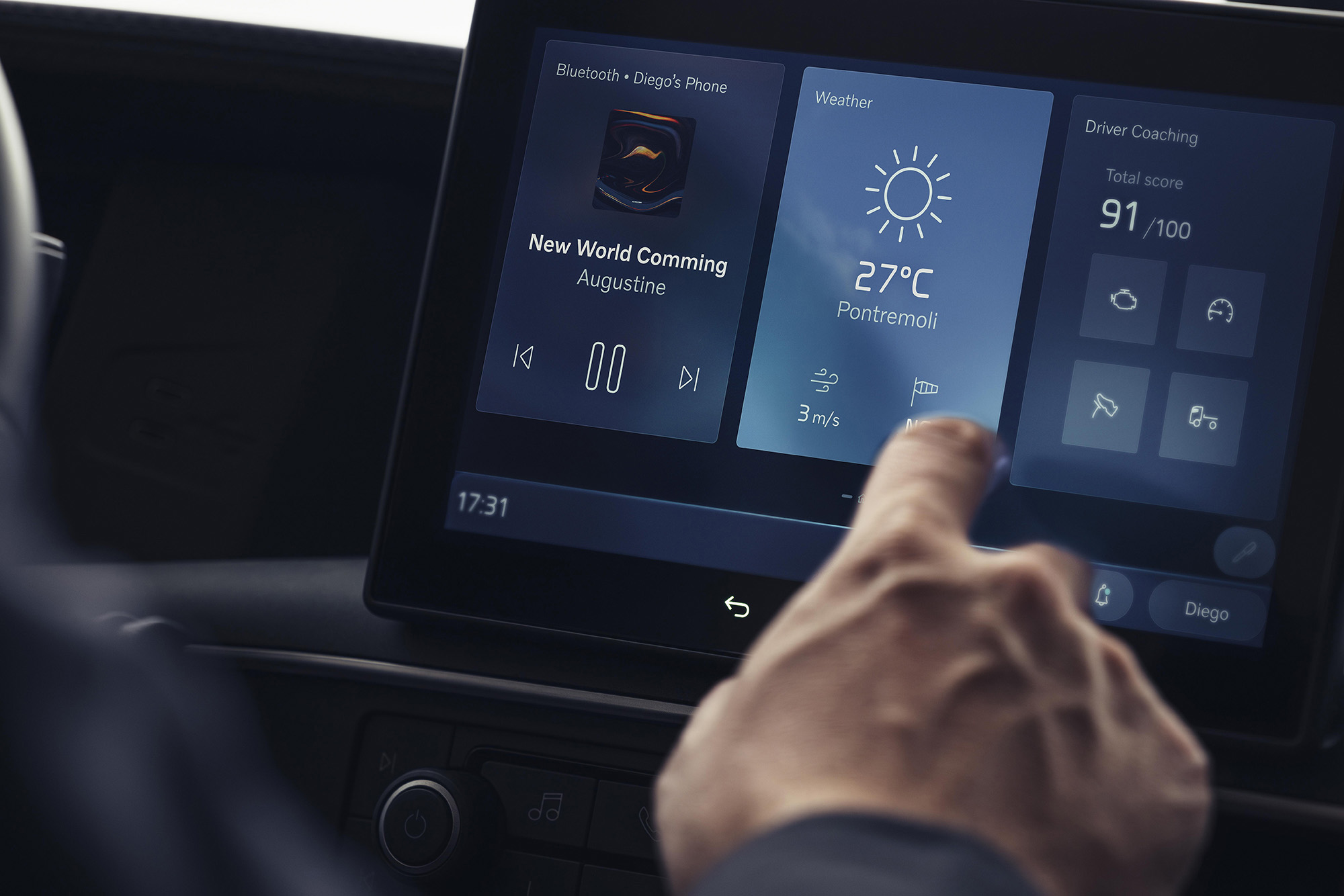 - Een nieuw ingebouwd navigatiesysteem zal worden aangeboden met verbeterde kaarten die zijn aangepast aan vrachtwagenspecifieke behoeften, met automatische kaartupdates die een efficiënte levering van goederen mogelijk maken.